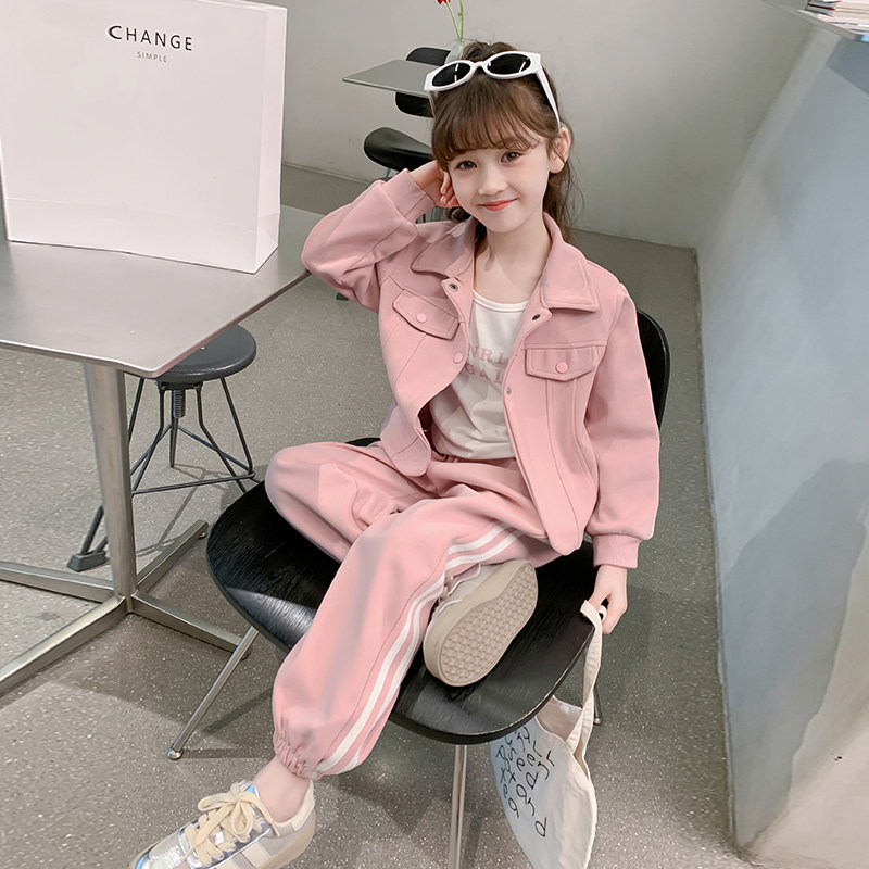 女童春装套装2026新款儿童洋气时髦网红三件套春秋女孩休闲运动装