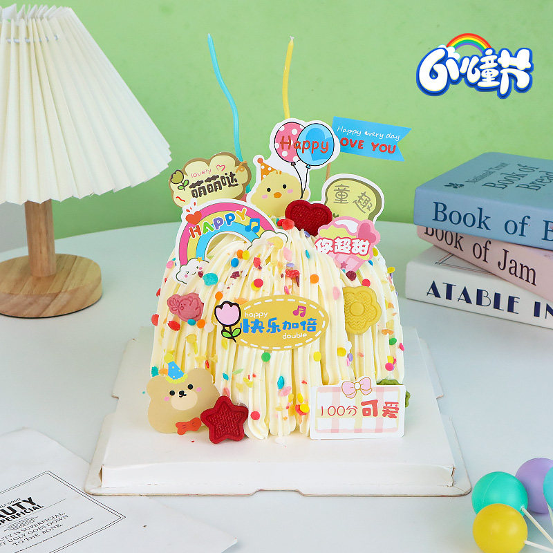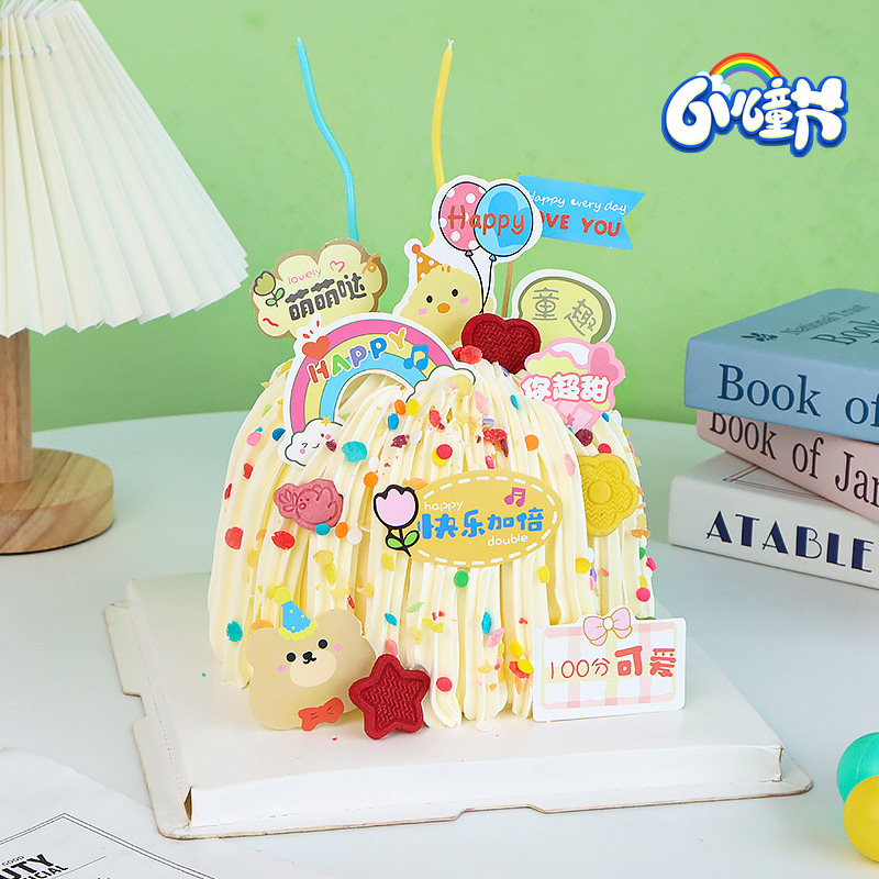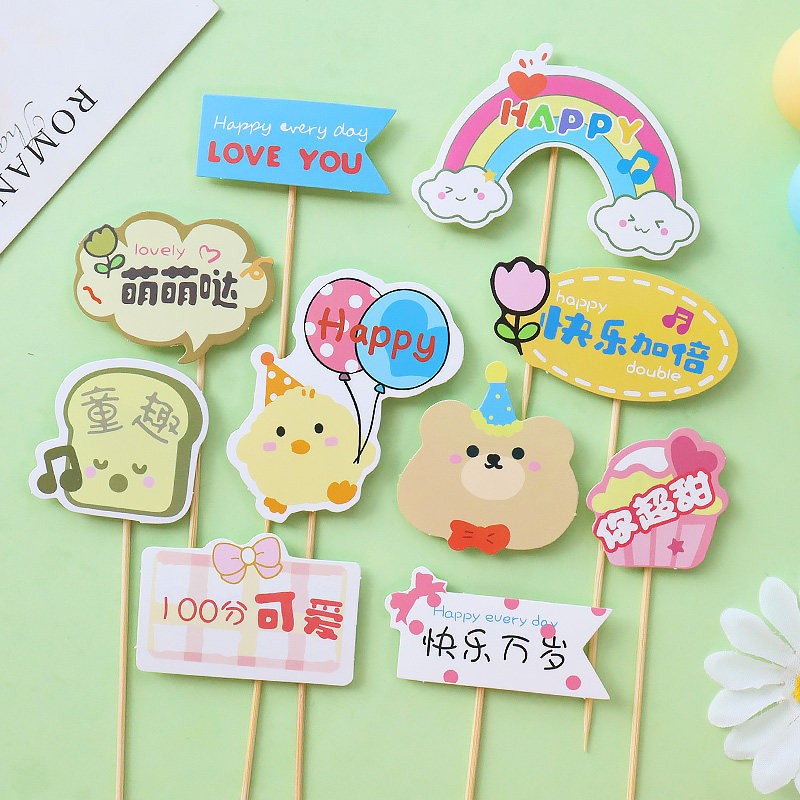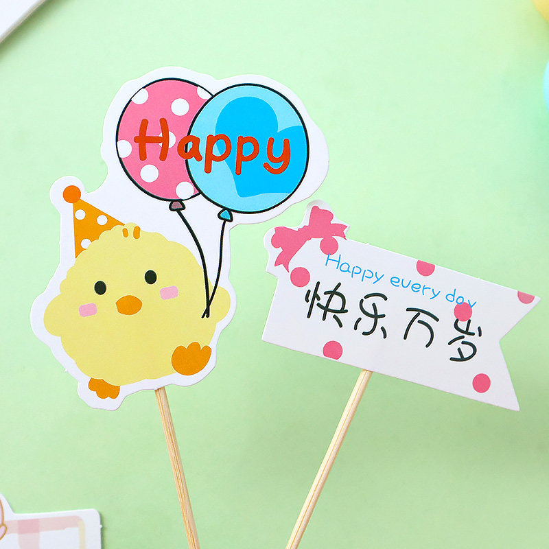 儿童节蛋糕装饰插件卡通小熊小鸭happy插旗快乐万岁纸杯甜品插卡