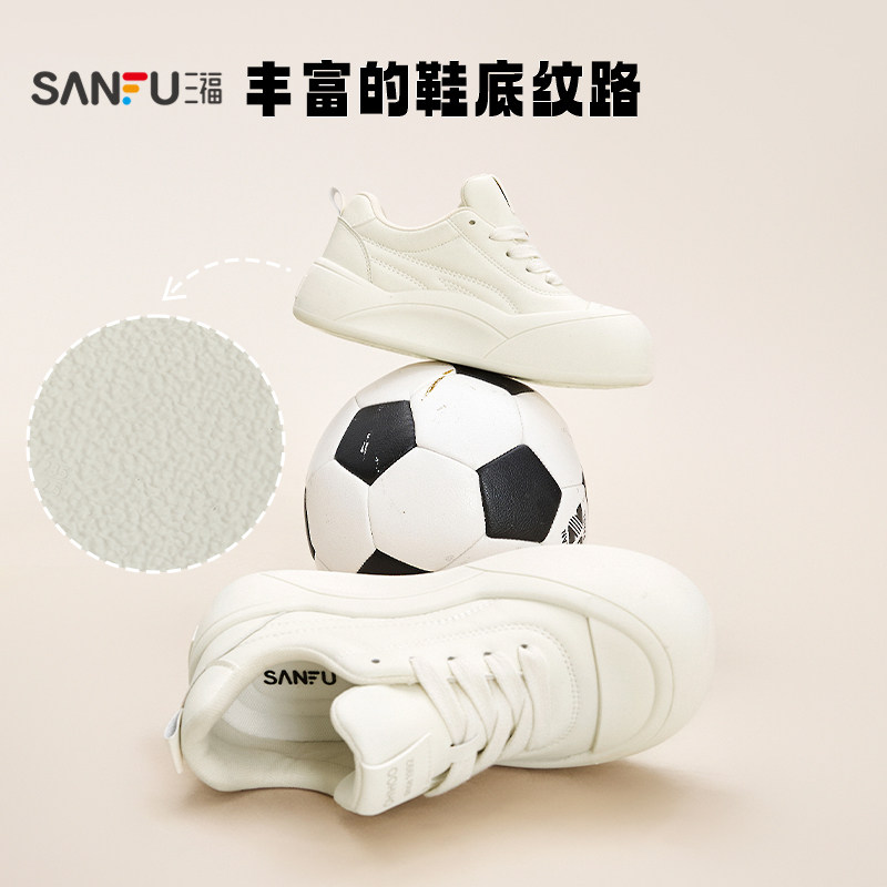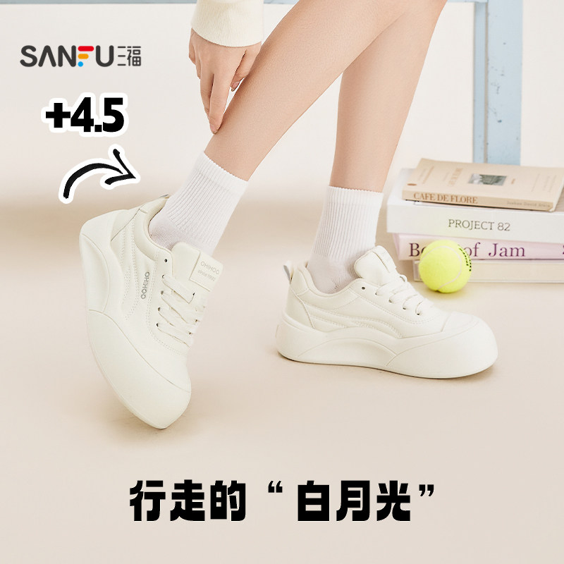 三福女板鞋春季休闲百搭小白鞋厚底显高大头饼干鞋时尚女鞋852173