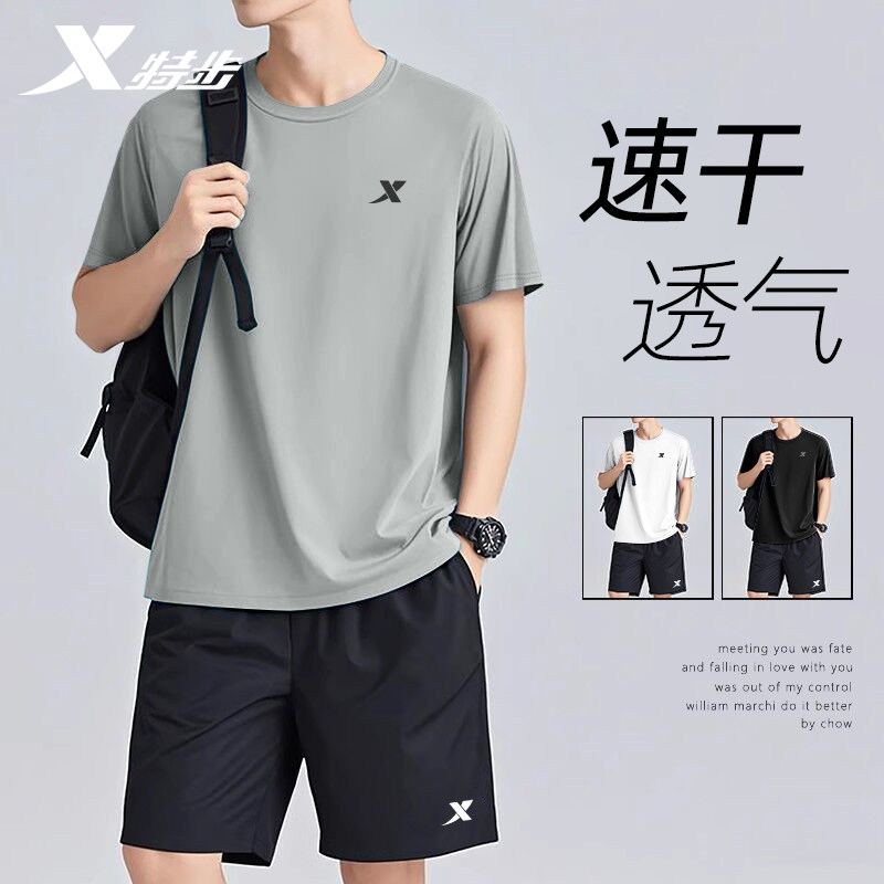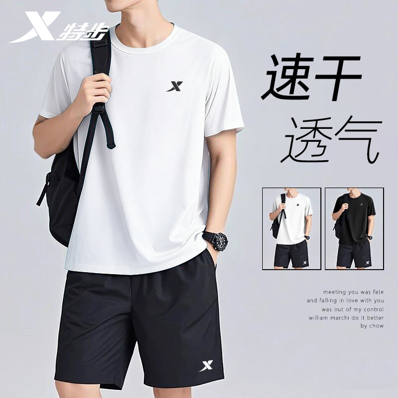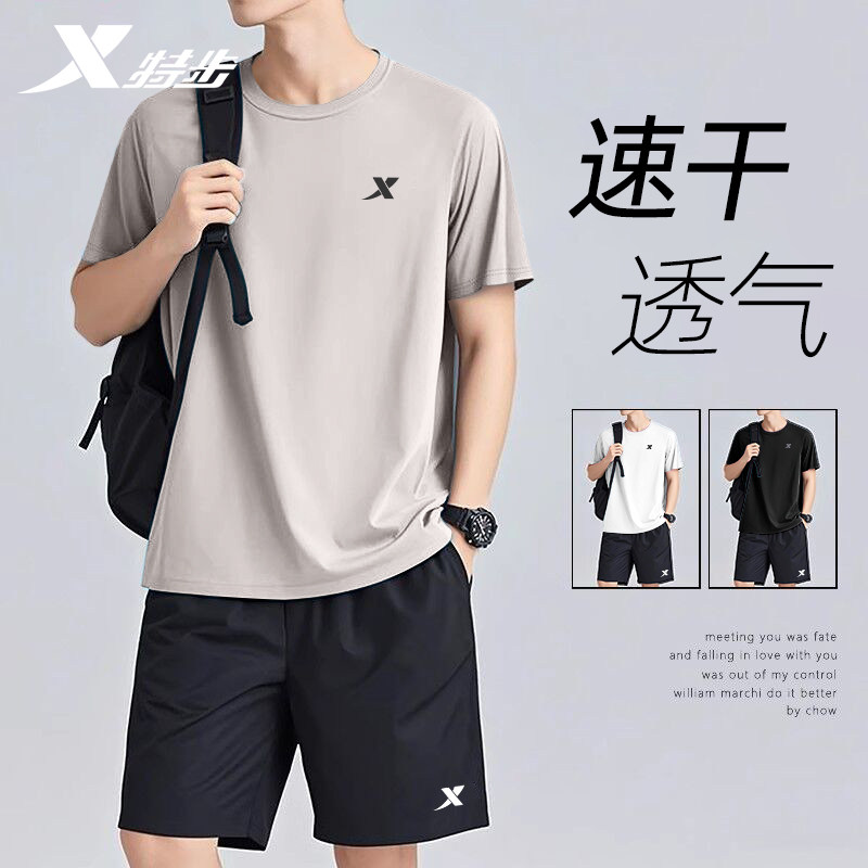 特步运动套装男款夏季透气速干衣正品2026新款休闲短袖短裤两件套