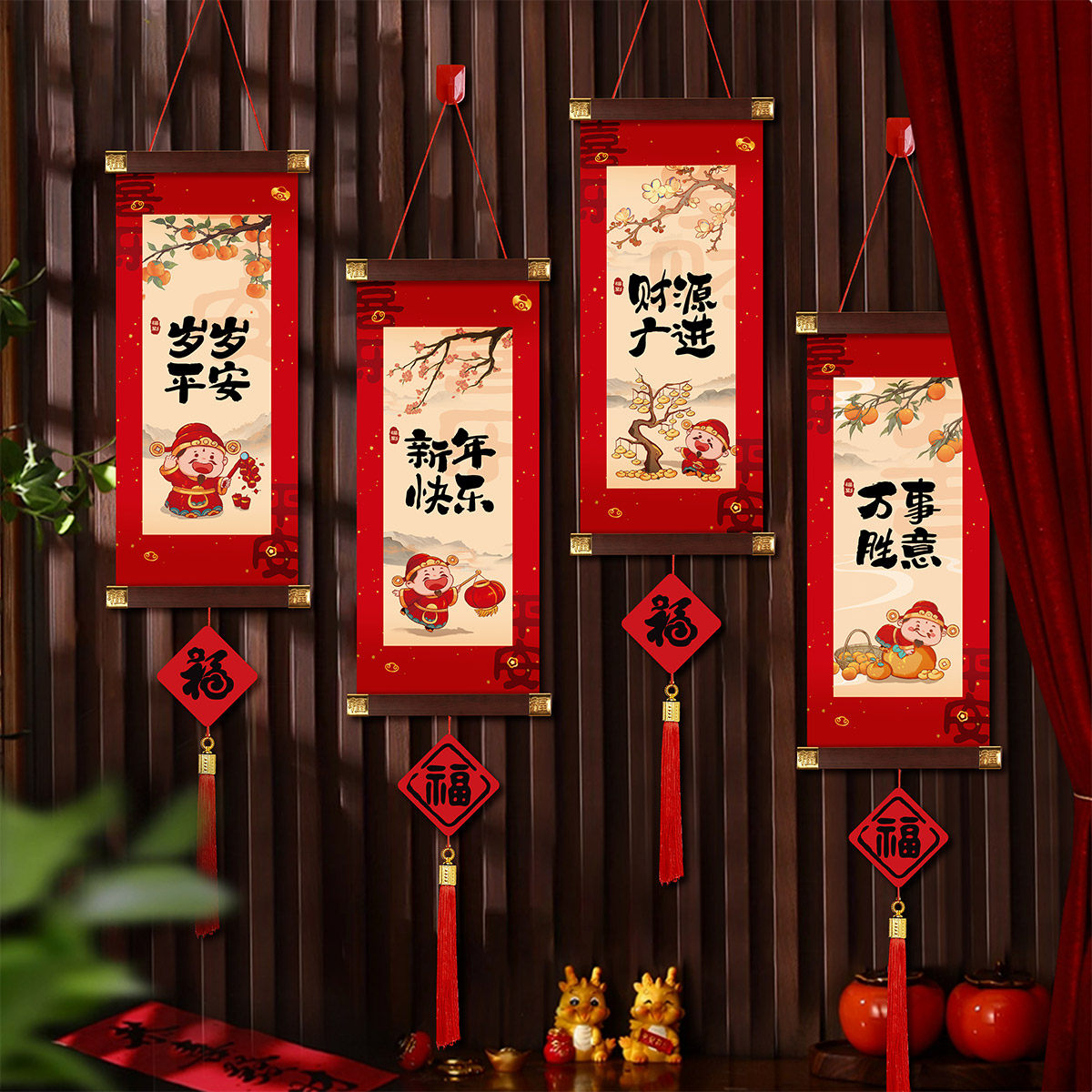 过年财神小对联马年春节2026新款客厅墙面挂饰新年装饰品氛围布置