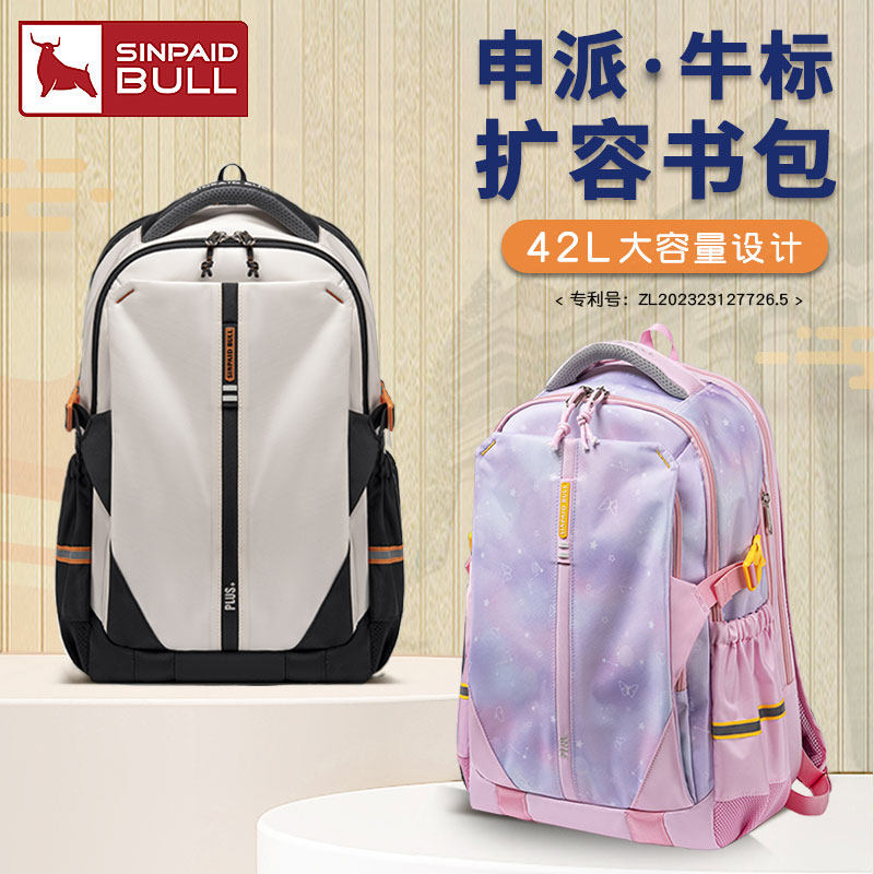 申派牛标书包男生高中生女大容量扩容结实耐用双肩包减负护脊书包