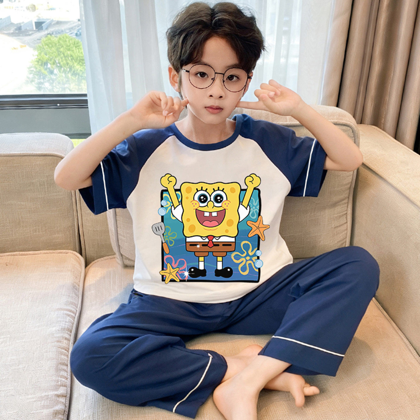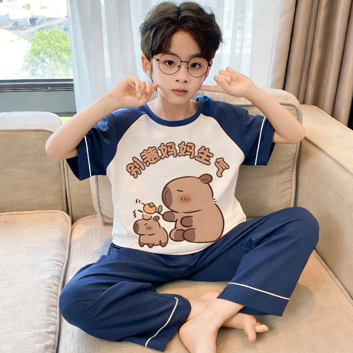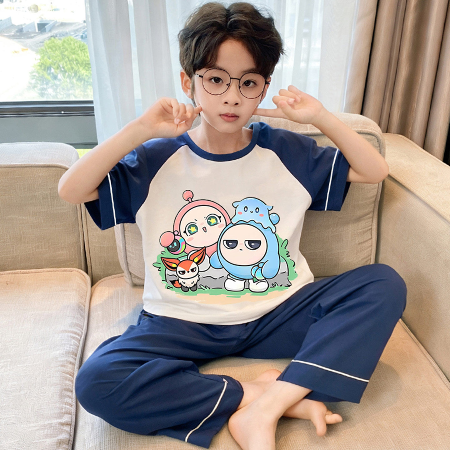 春夏季纯棉儿童短袖睡衣男童刺客伍六七中大童学生圆领宽松家居服