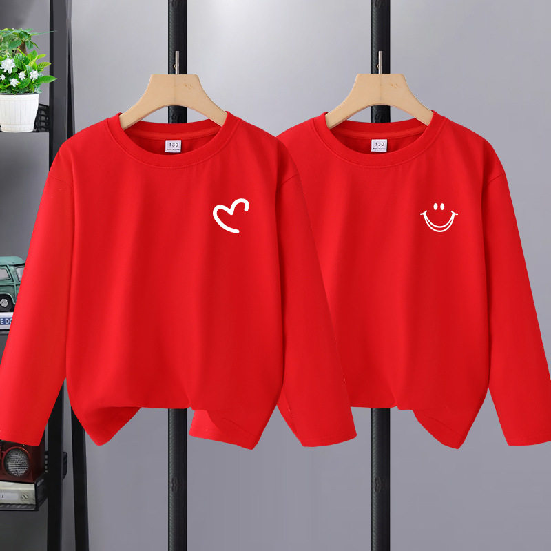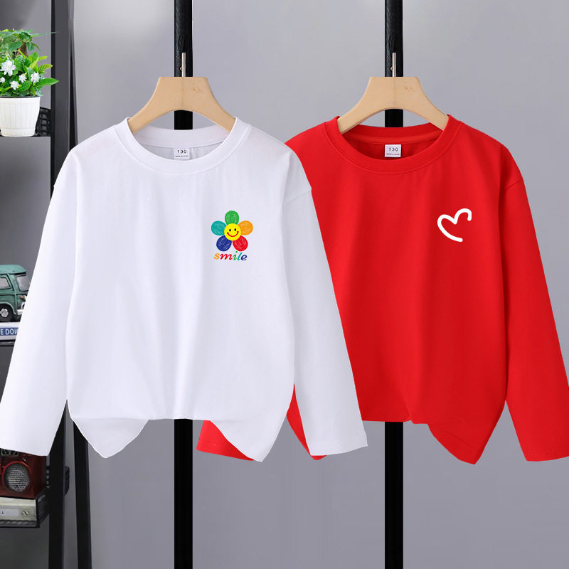 儿童秋衣外穿红色长袖t恤纯棉春秋季薄款男童上衣女童白色打底衫