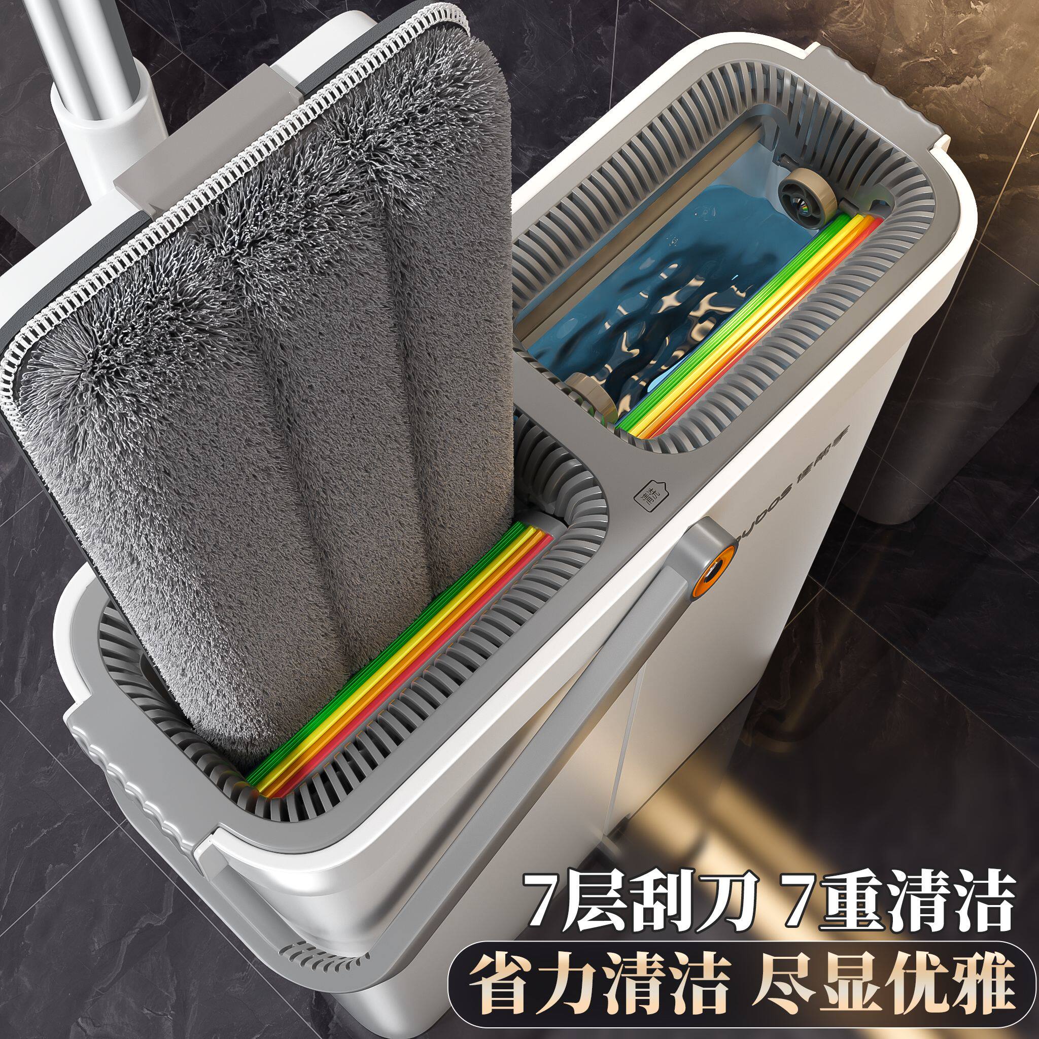 佳帮手带桶免手洗平板拖把家用一拖净干湿两用拖地神器懒人刮刮乐