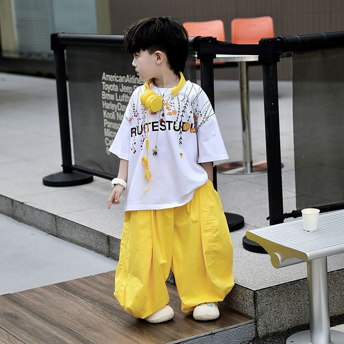 男童套装夏2026新款夏日多巴胺儿童夏季短袖t恤酷帅透气防蚊裤潮