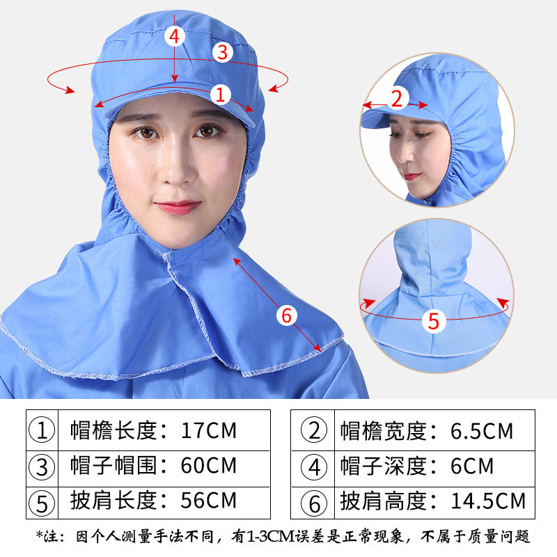 食品厂帽子卫生帽防掉发女款车间披肩帽包头防尘工作帽男劳保风帽