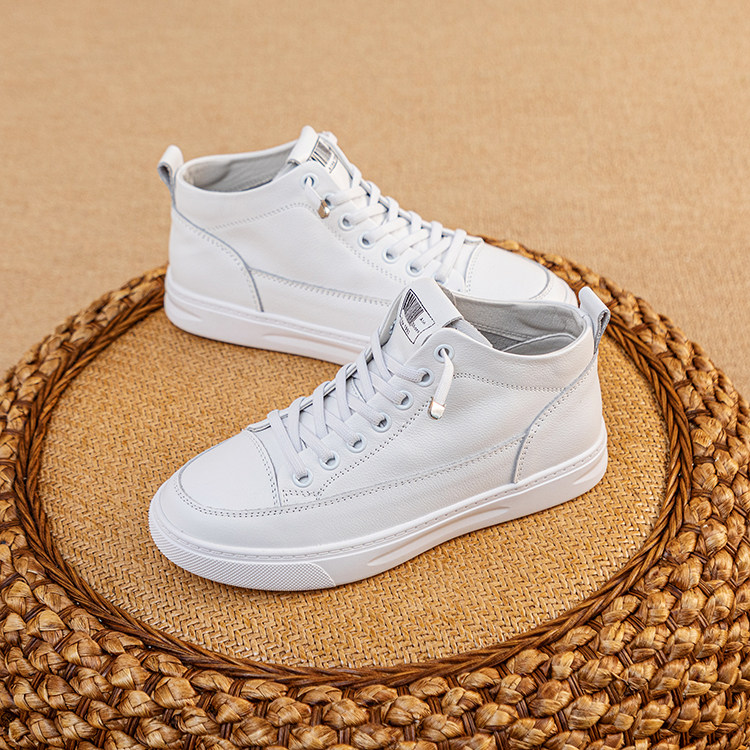 头层牛皮高帮小白鞋女透气2025春秋真皮百搭大码女鞋平底休闲板鞋