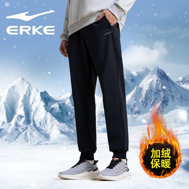 鸿星尔克运动长裤男2026新款冬季加绒保暖抗寒束脚青少年休闲裤子