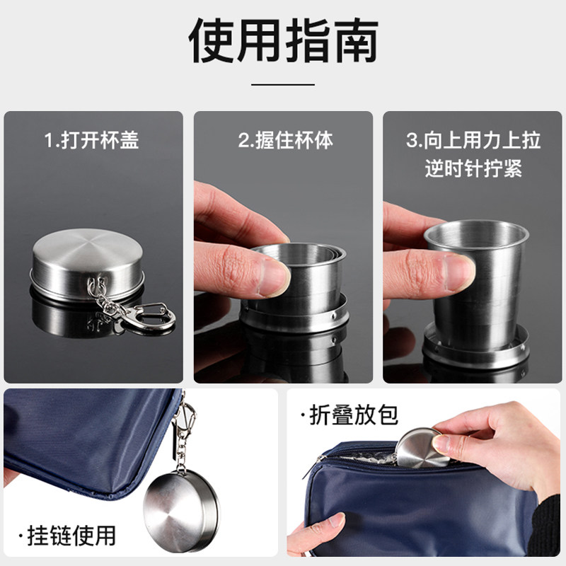 304不锈钢折叠杯子便携式耐高温食品级漱口小水杯户外旅行压缩杯