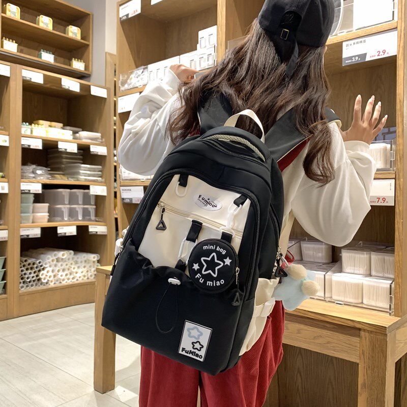 耐脏书包初中女生黑色双肩包女大容量高中生学院风女孩背包高颜值