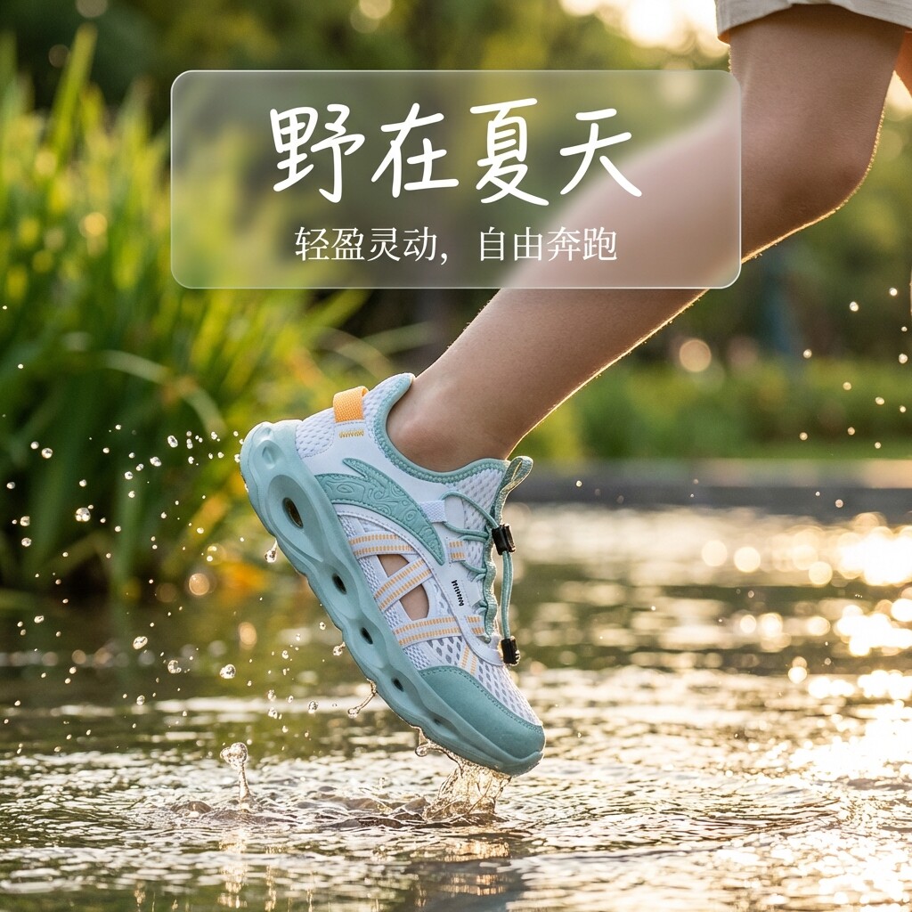 安踏儿童男女童凉鞋2026夏季新款沙滩鞋男大童网面透气男生溯溪鞋