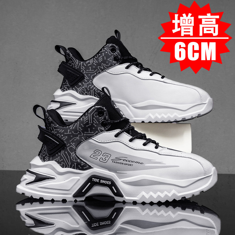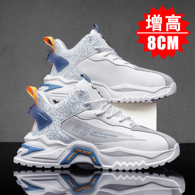 春季男鞋休闲潮流运动隐形内增高老爹鞋男8厘米黑色增高鞋10cm男