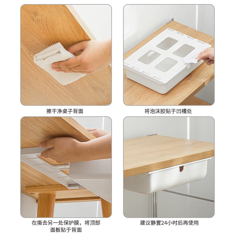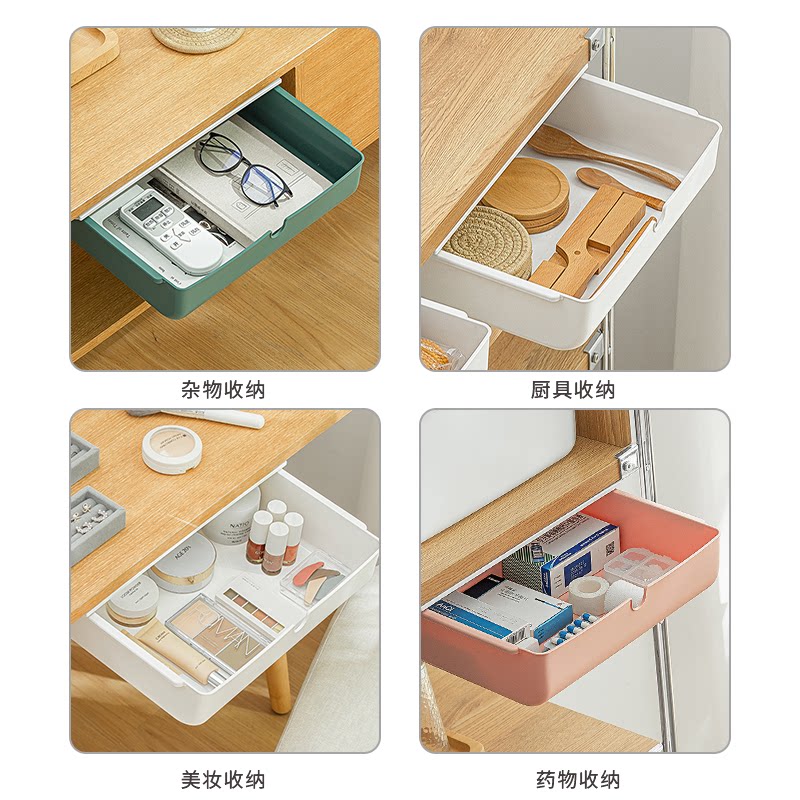 桌下隐形抽屉式收纳盒桌面办公室工位书桌桌底文具置物架隐藏神器