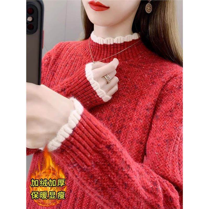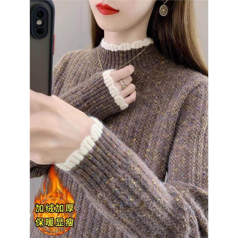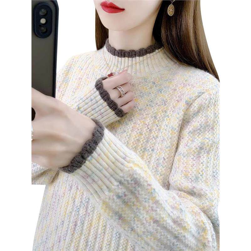 半高领加绒加厚毛衣女秋冬宽松内搭可外穿针织打底衫初中生上衣