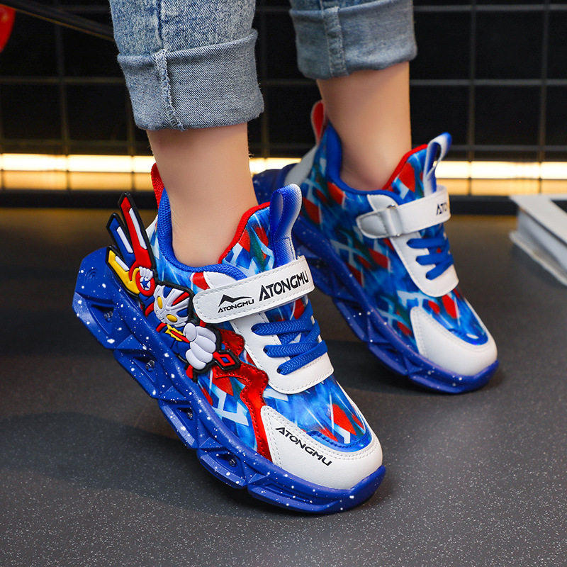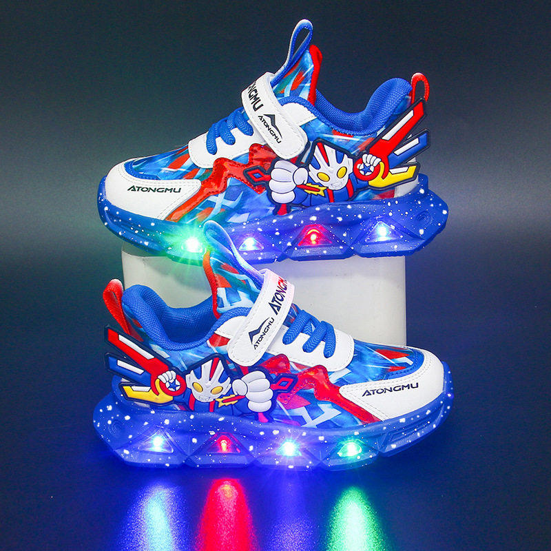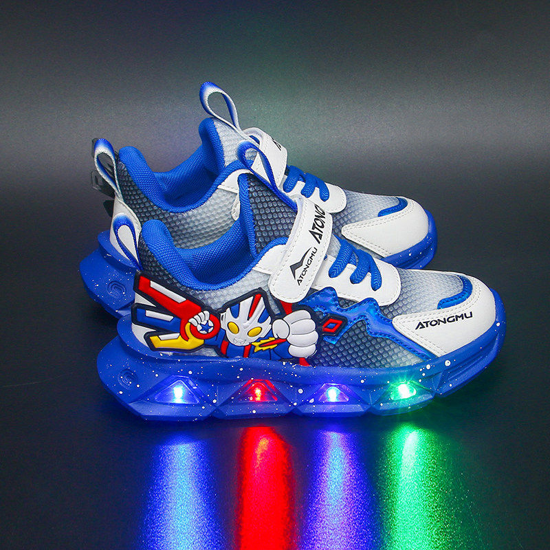 男童奥特曼儿童鞋子带灯发光2026春秋季新款运动鞋网面透气中大童