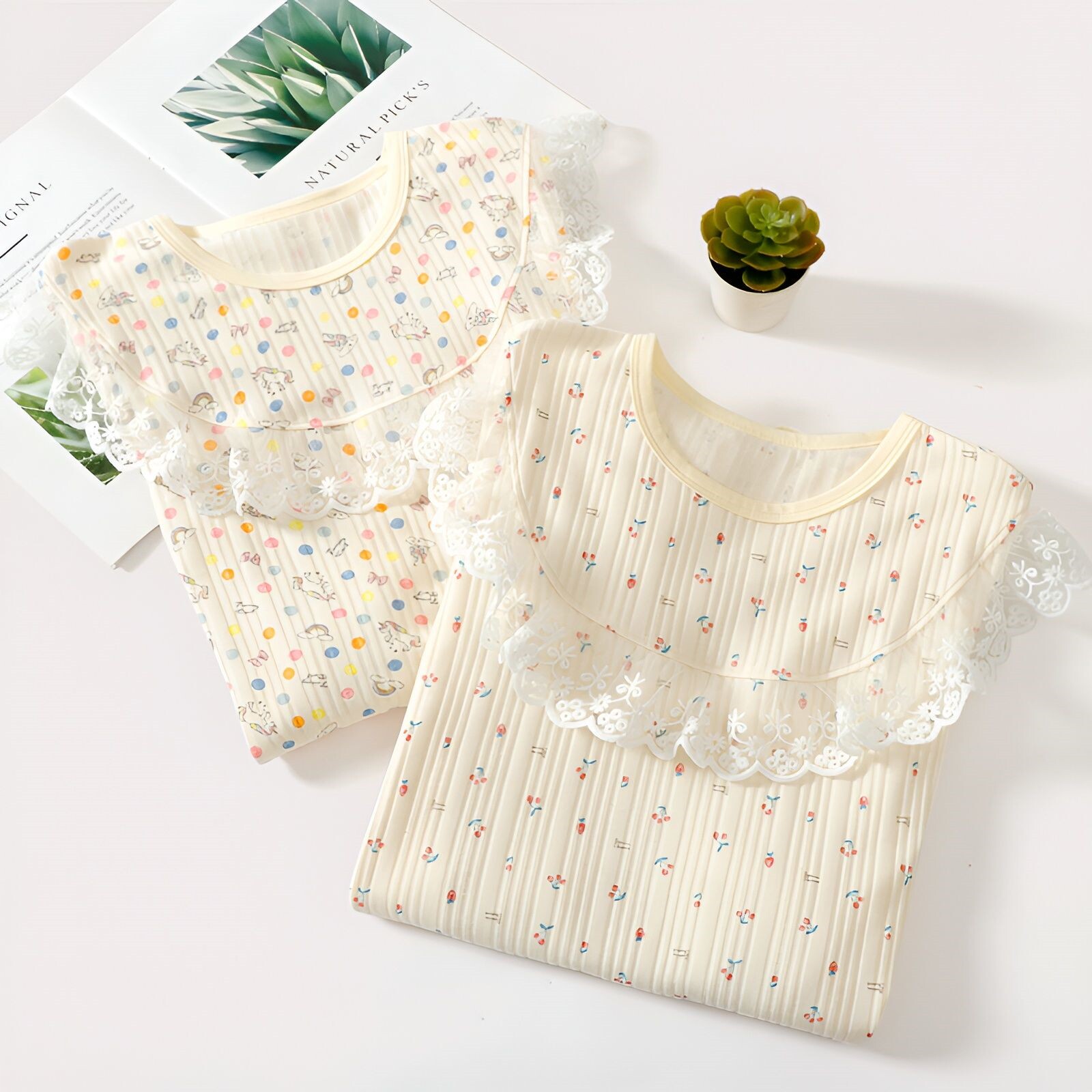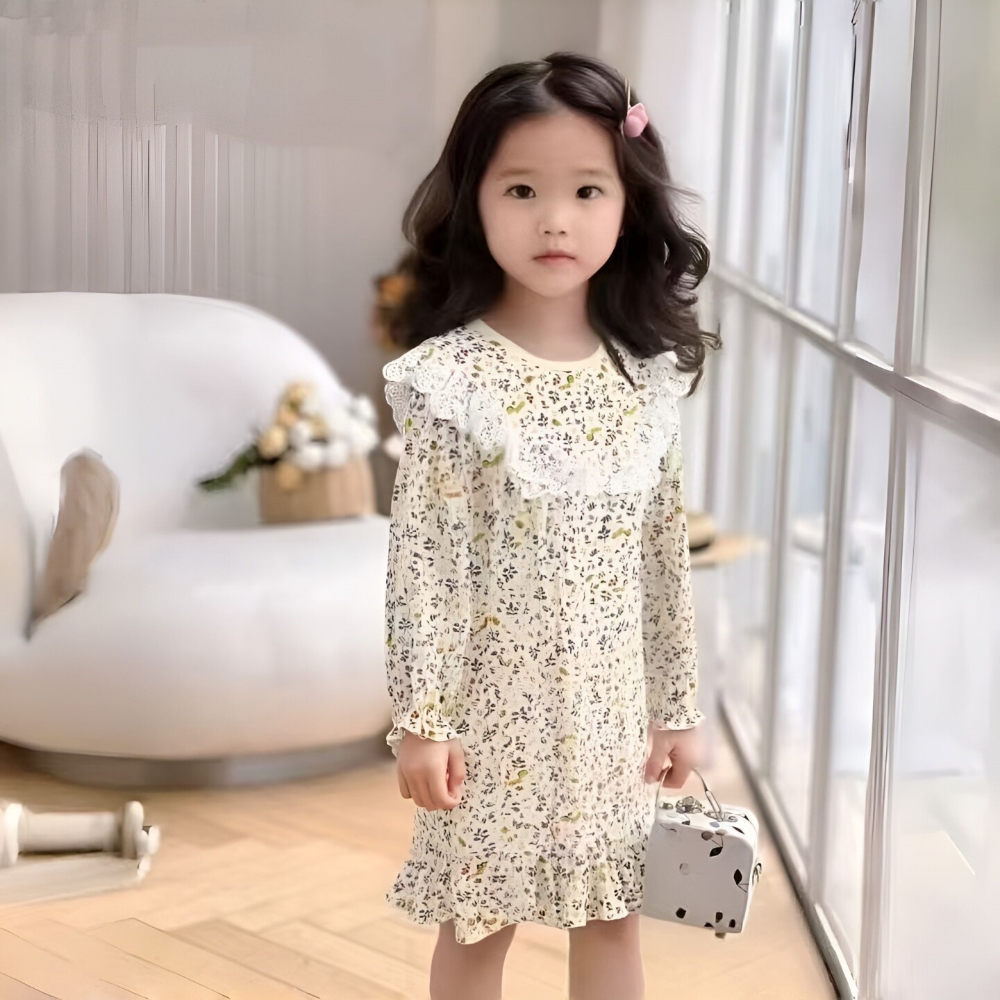 女童纯棉花边睡裙千金风长袖荷叶边家居服连衣裙A类薄款110-170码
