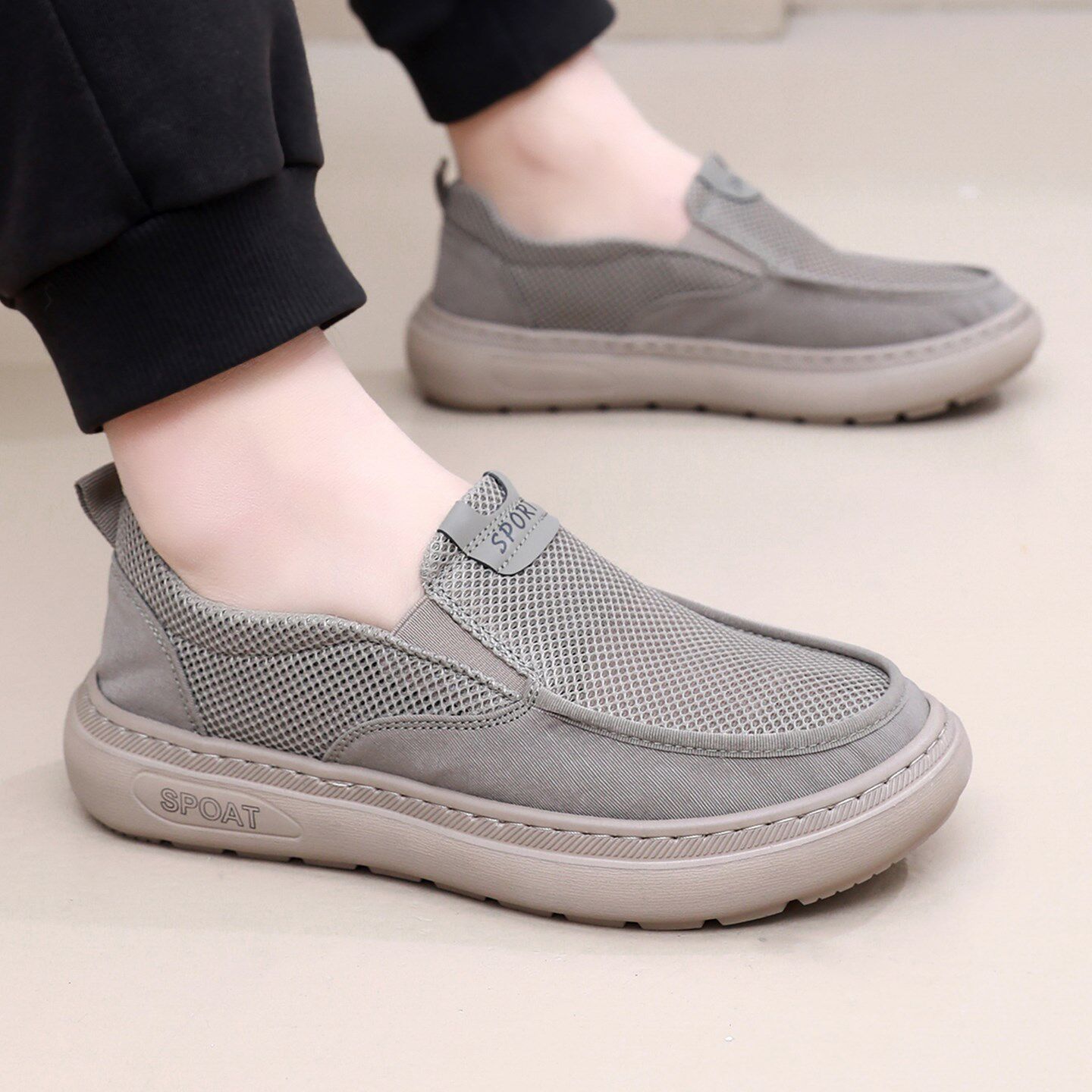 夏老北京布鞋男网鞋厚底防滑轻便爸爸网面鞋一脚蹬透气网眼男鞋子