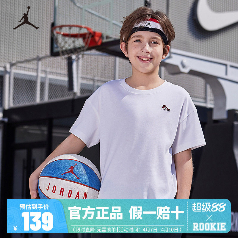 JORDAN乔丹童装儿童短袖2025夏季新款男童白T恤上衣半袖JD2422068