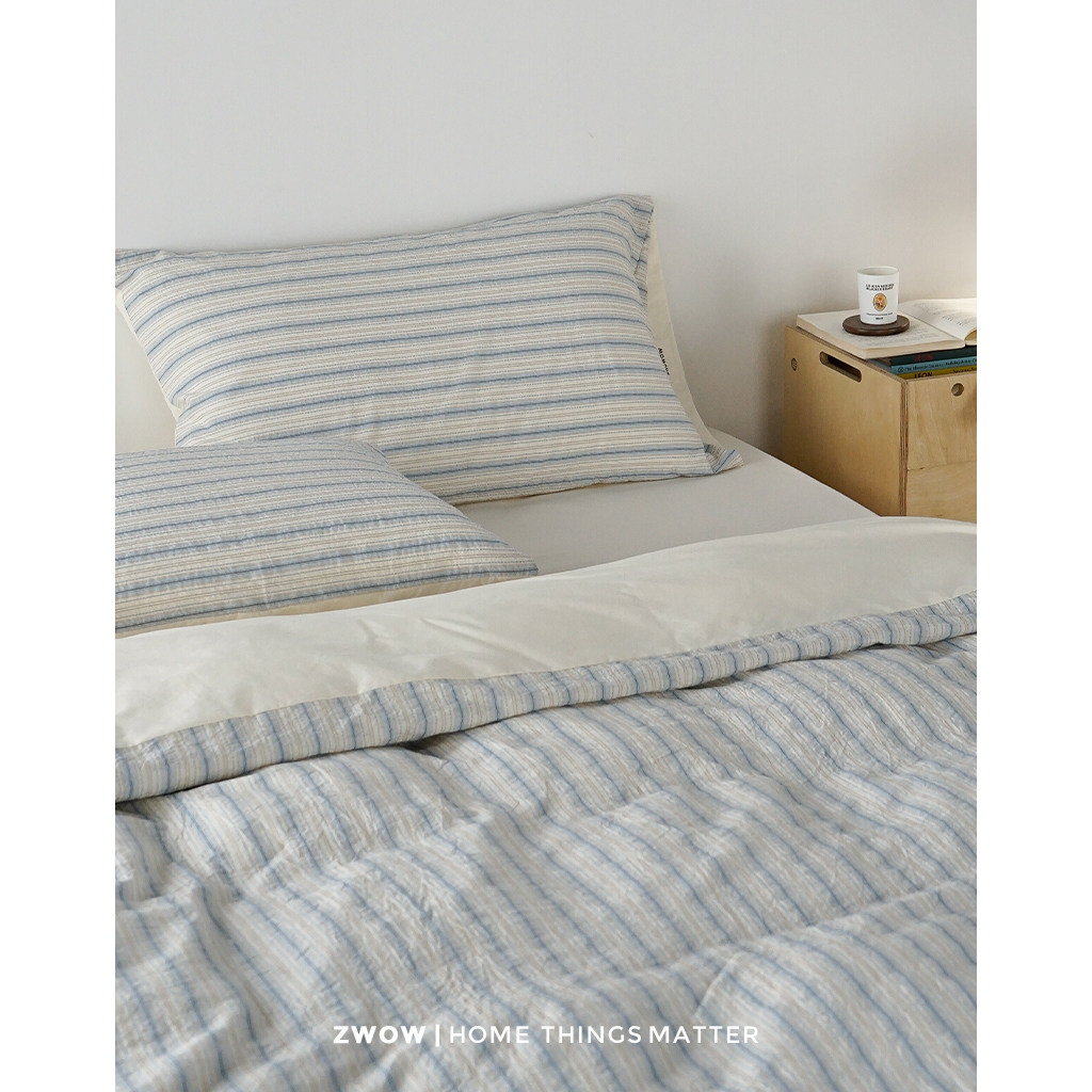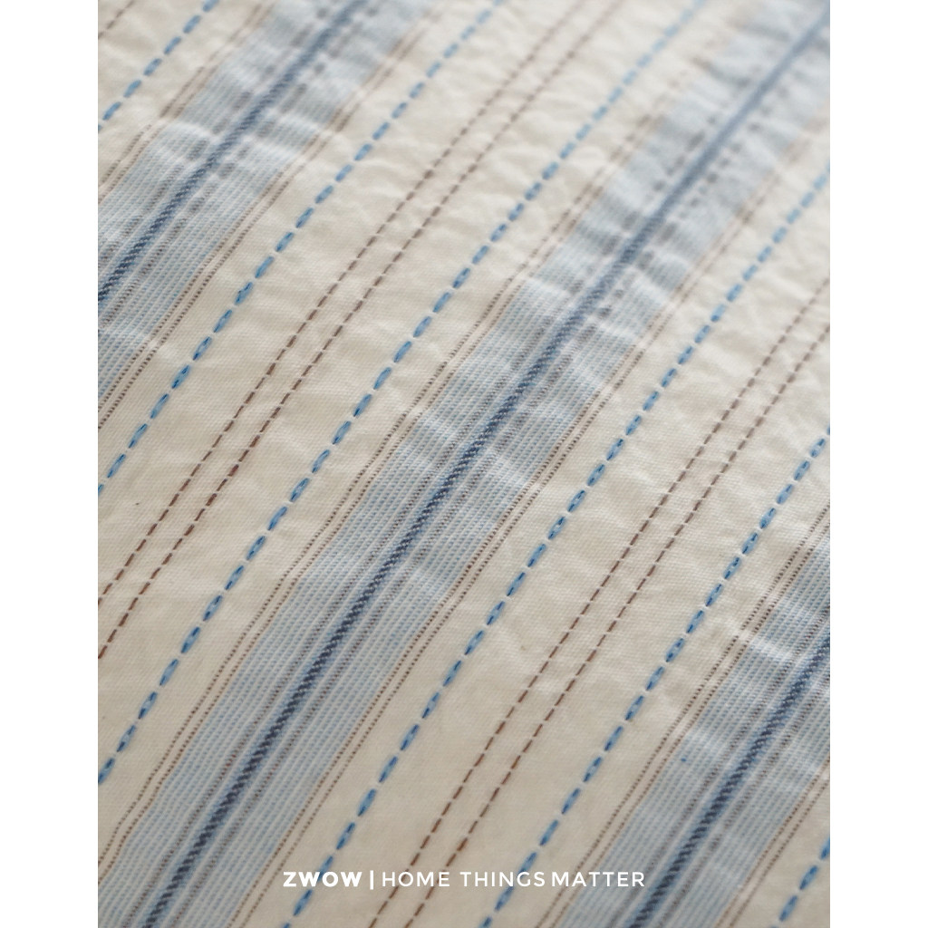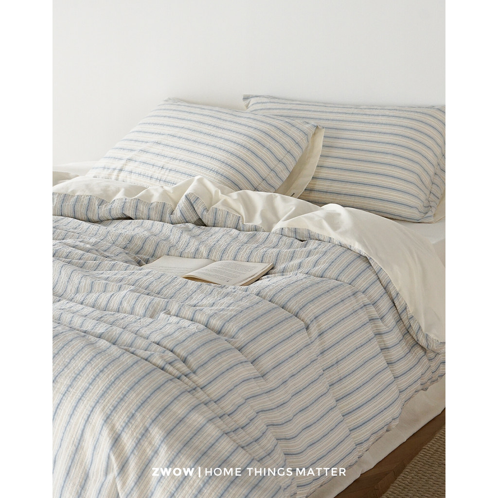 造卧zwow韩系立体肌理蓝色条纹小清新纯棉100全棉四件套2026新款