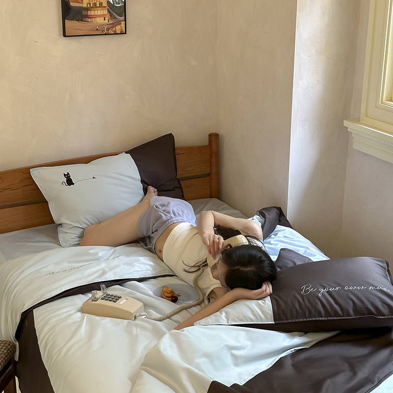 北欧都市风大拼角100S全棉四件套纯棉男生床上用品简约中性风被套