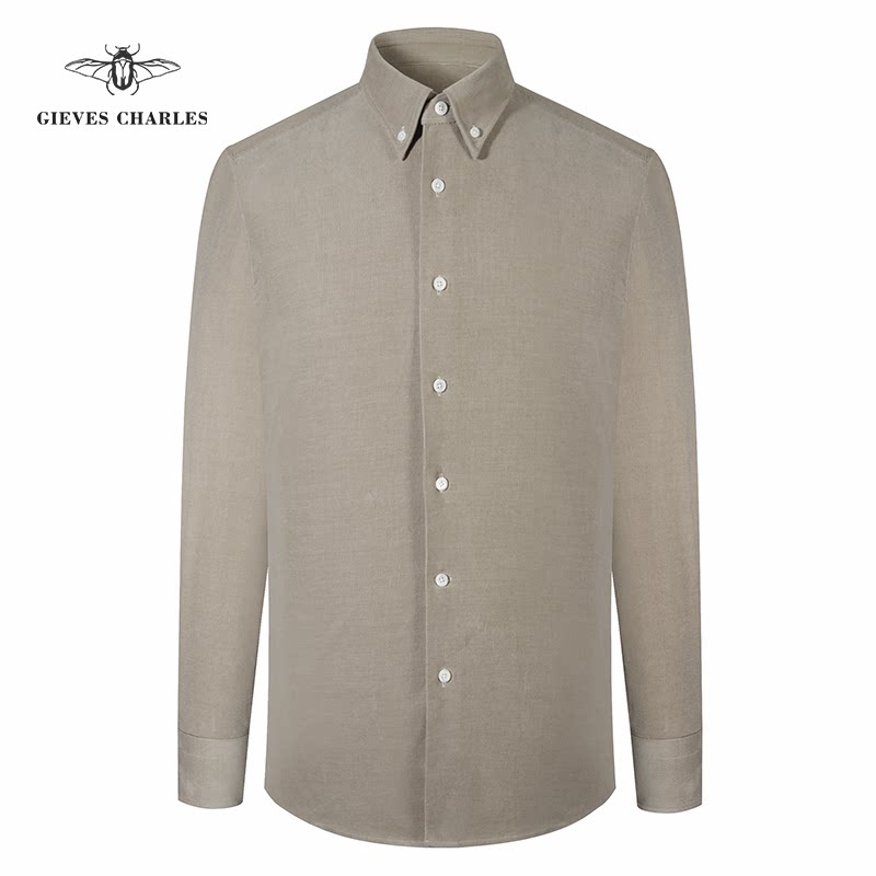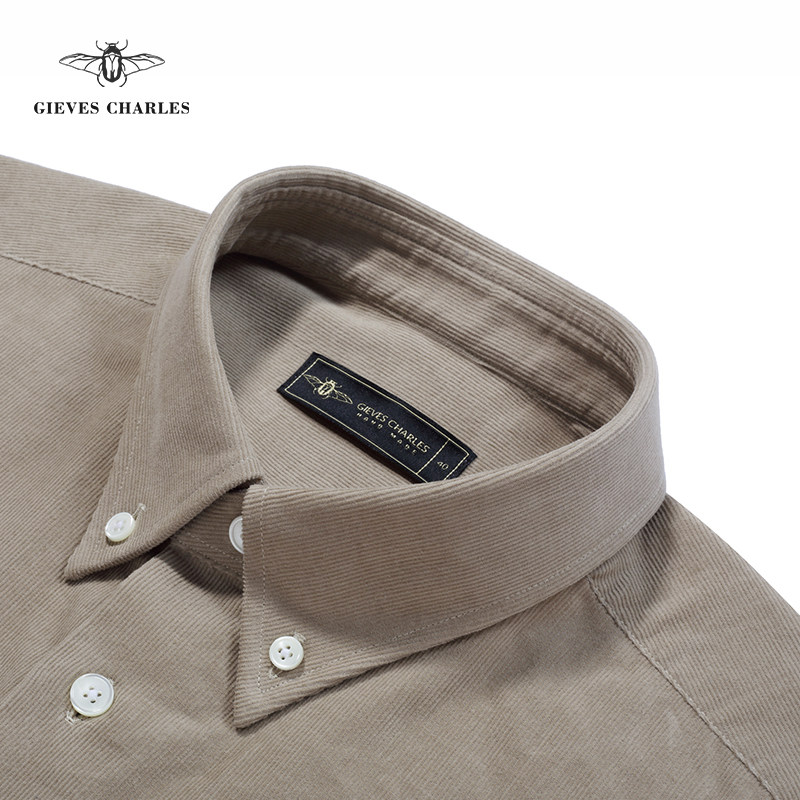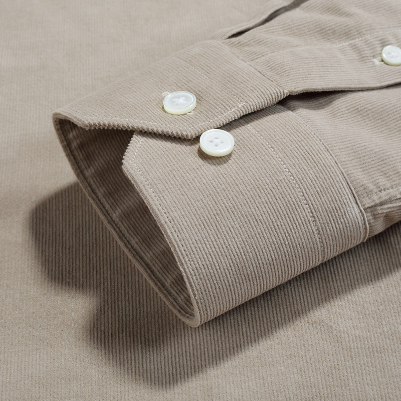 【秋冬款】米褐色纯棉灯芯绒纽扣领衬衫男士商务休闲衬衫保暖