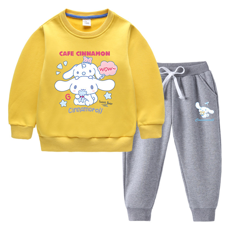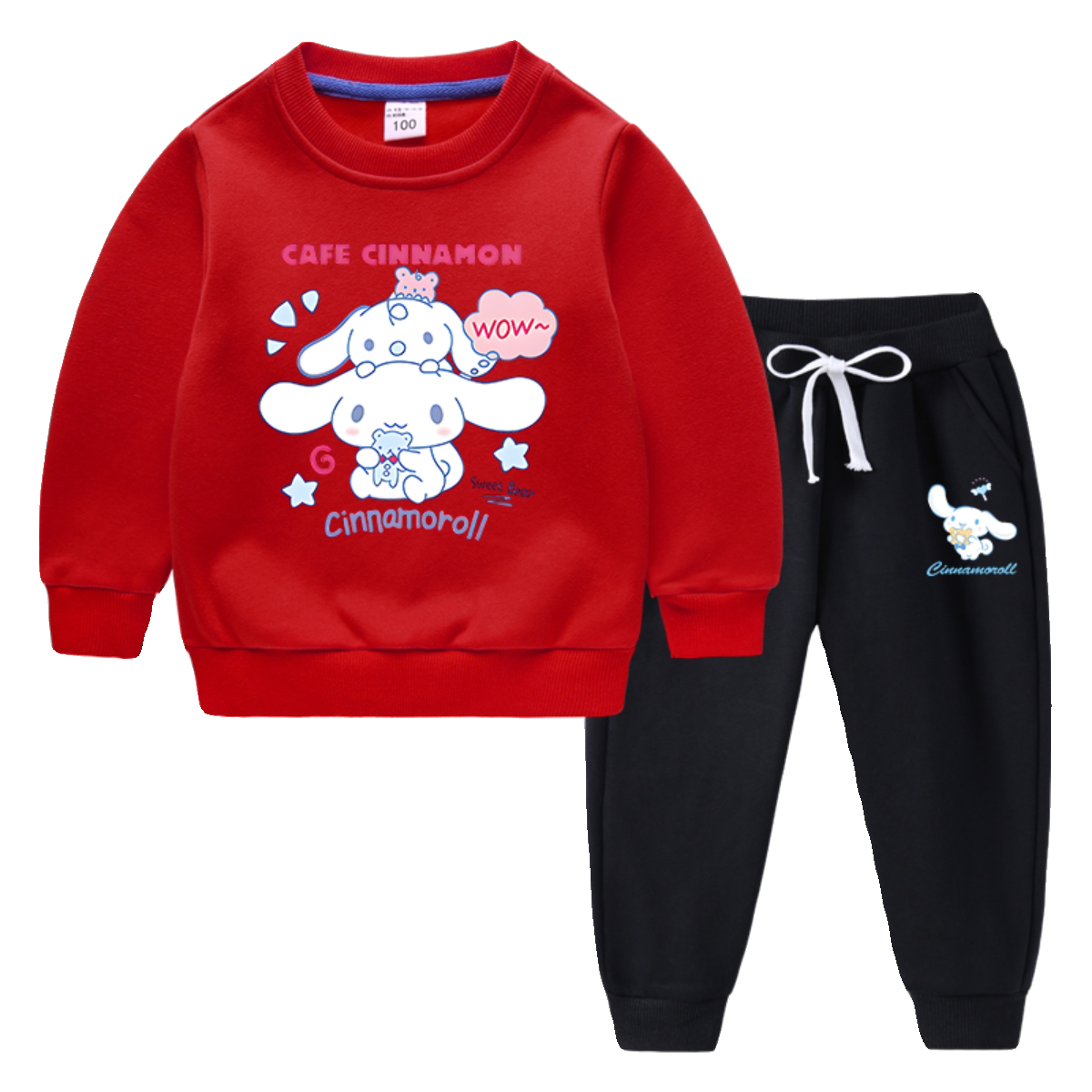 女童薄绒卫衣卫裤玉桂狗衣服冬季加绒套装男儿童冬装一体绒两件套