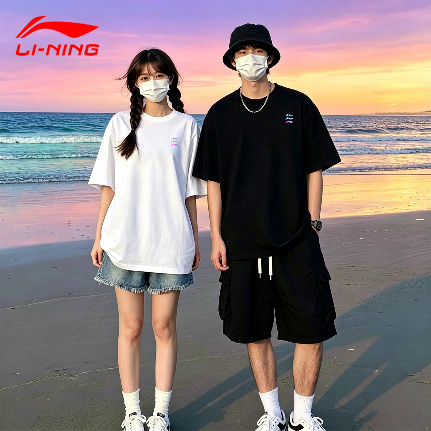 李宁情侣短袖t恤男女款2026新款夏季透气简约宽松衣服大码青少年