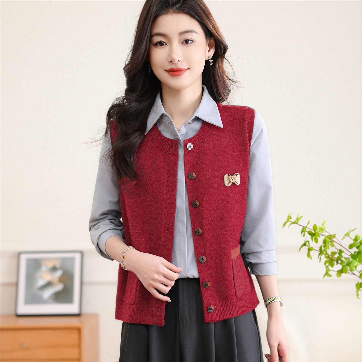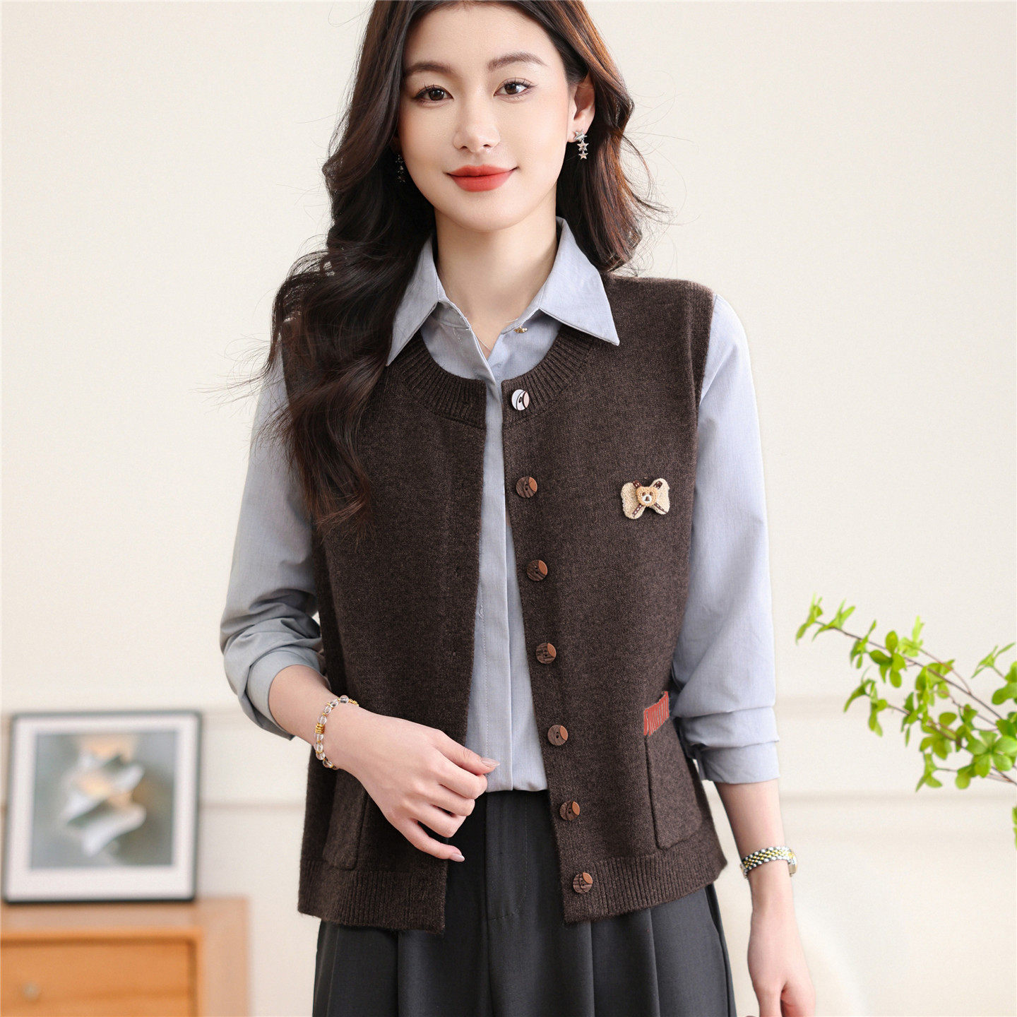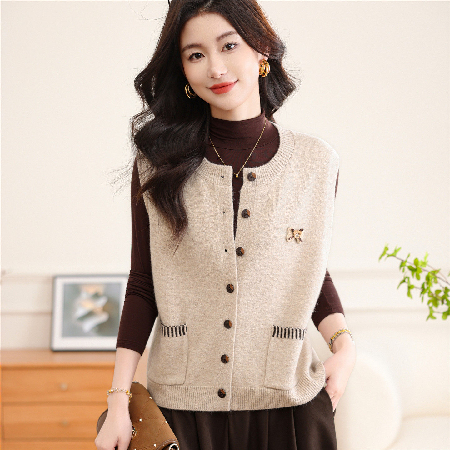 2026春季针织开衫马甲女款新款春秋时髦宽松无袖外搭叠穿毛衣外套