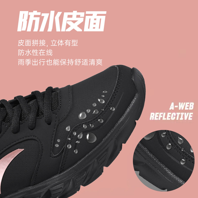 安踏运动鞋女鞋皮面防水跑步鞋2026新款官方正品软底妈妈款休闲鞋