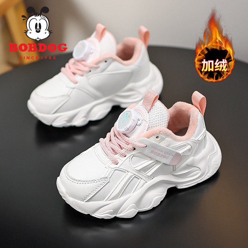 巴布豆童鞋儿童棉鞋2025冬季新款加绒保暖女童小白鞋男童老爹鞋潮