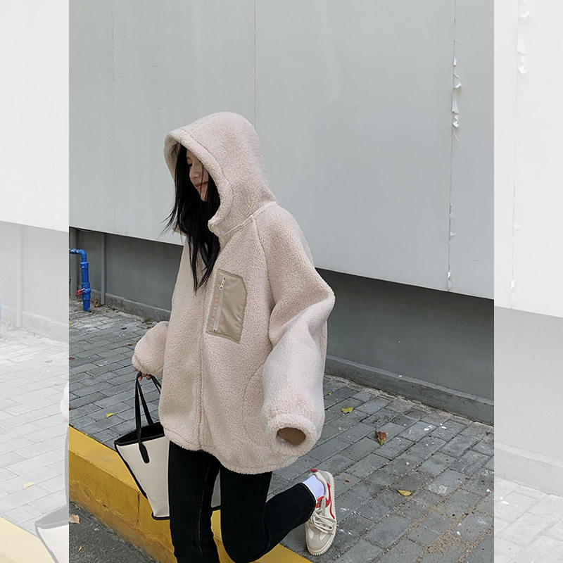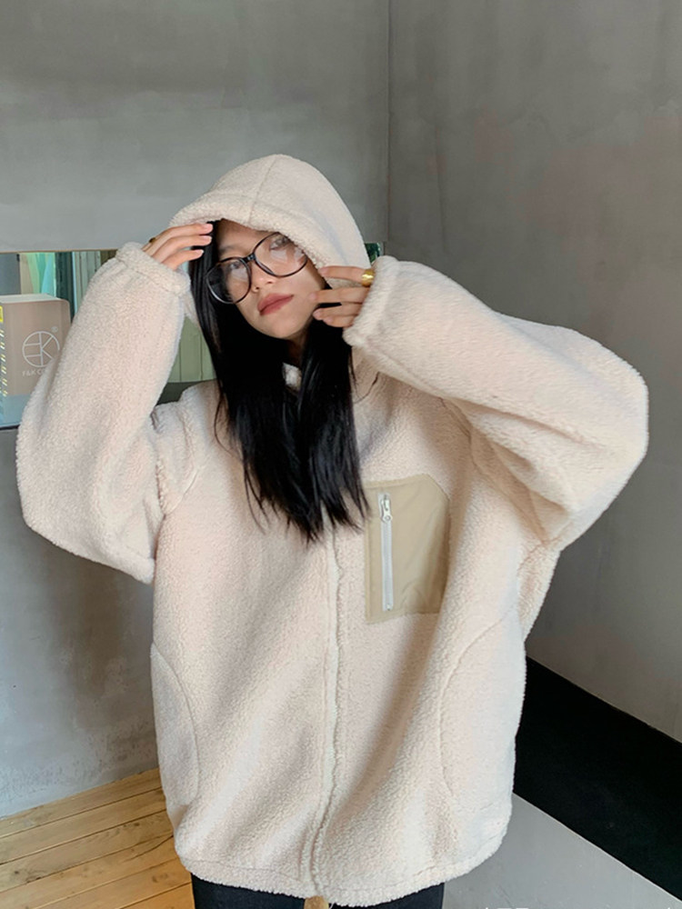 秋冬加绒加厚羊羔绒外套卫衣女款2026新款爆款连帽开衫中长款上衣