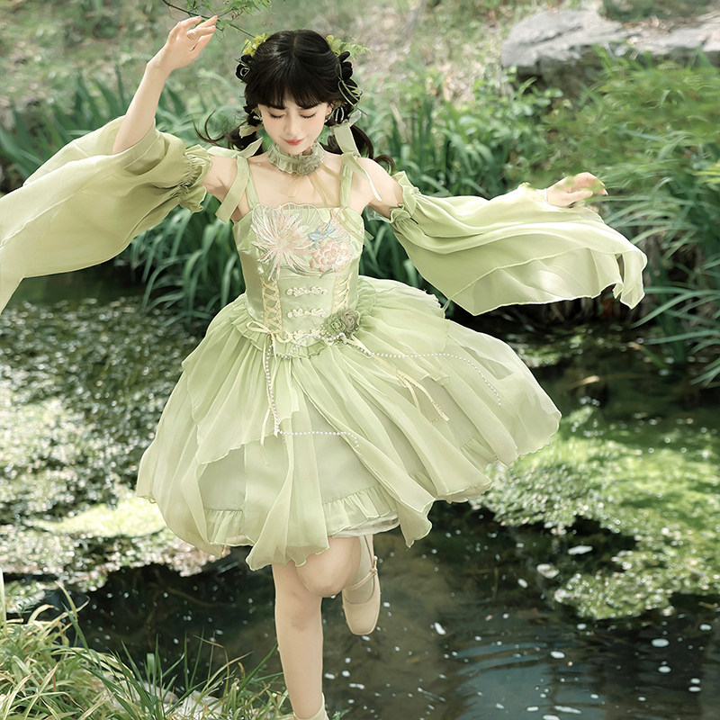 雪纺连衣裙女夏国风汉元素日常小个子lolita减龄收腰新中式吊带裙