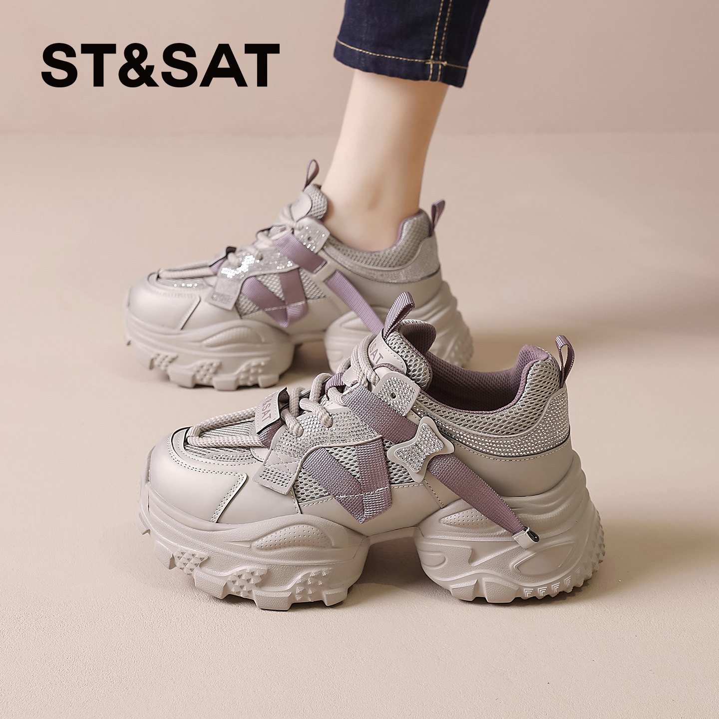 星期六紫色老爹鞋女款新款运动鞋增高鞋厚底休闲鞋子夏季透气百搭