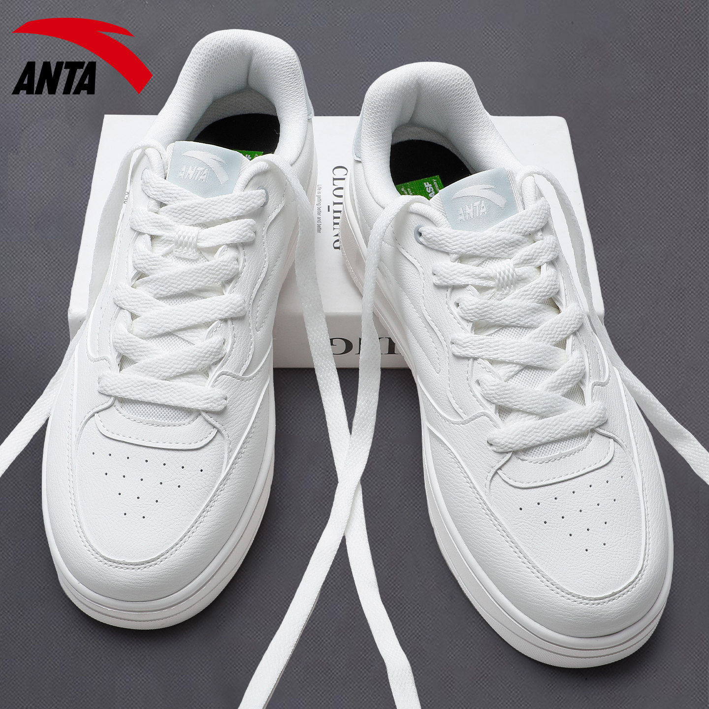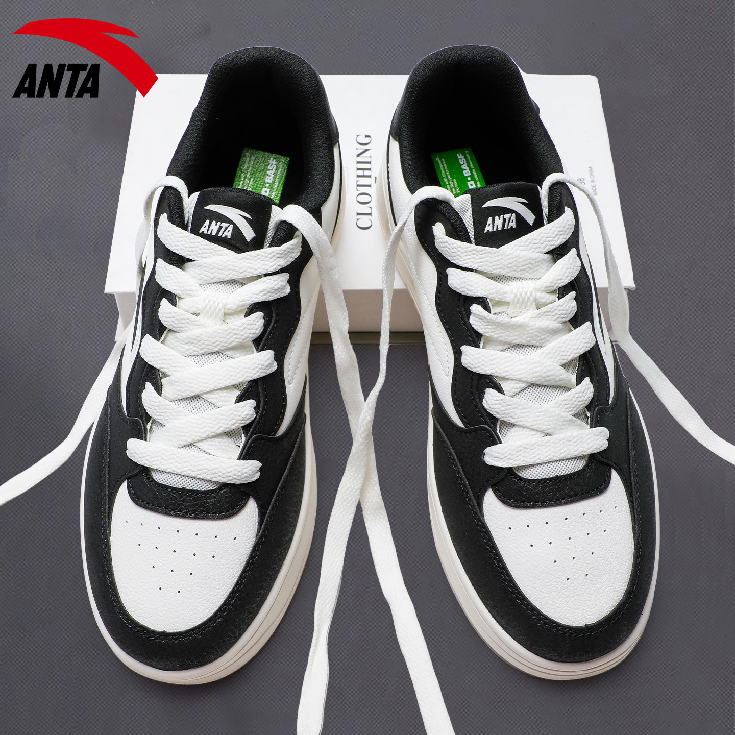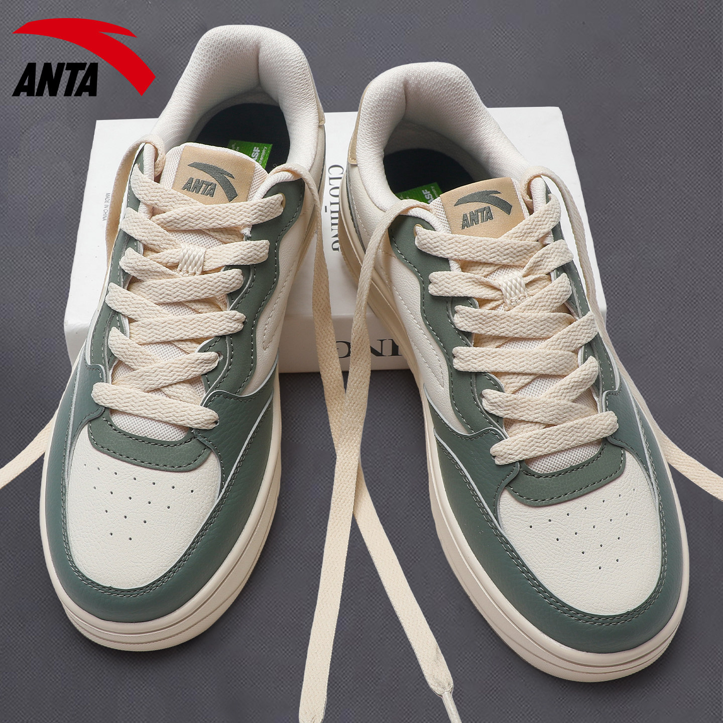 安踏蓝色低帮板鞋男鞋时尚复古2026春夏新款学生百搭厚底运动鞋男
