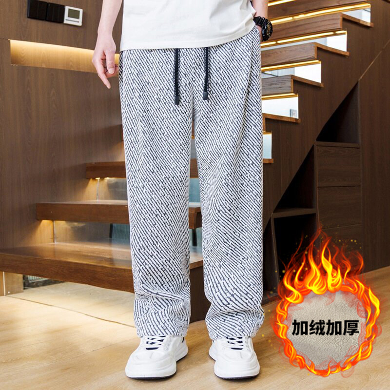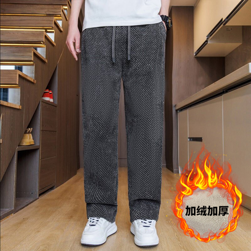 秋冬款雪尼尔潮流休闲长裤子男孩初中学生加绒卫裤青少年帅气大童