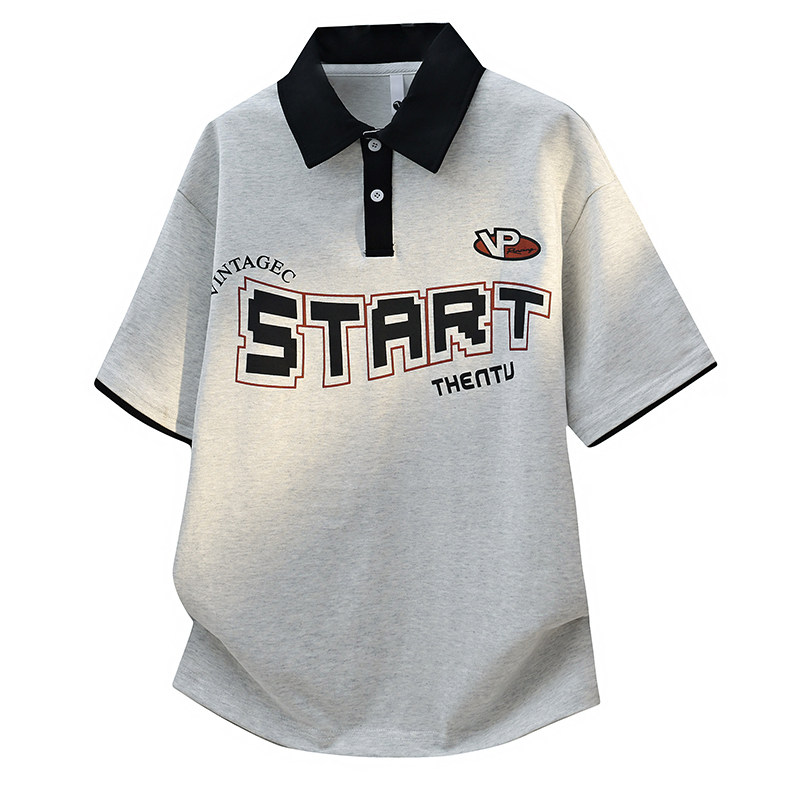 稻草人美式复古印花短袖t恤男夏季新款Polo衫上衣青少年体恤衫潮