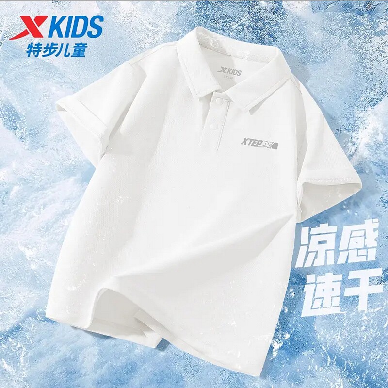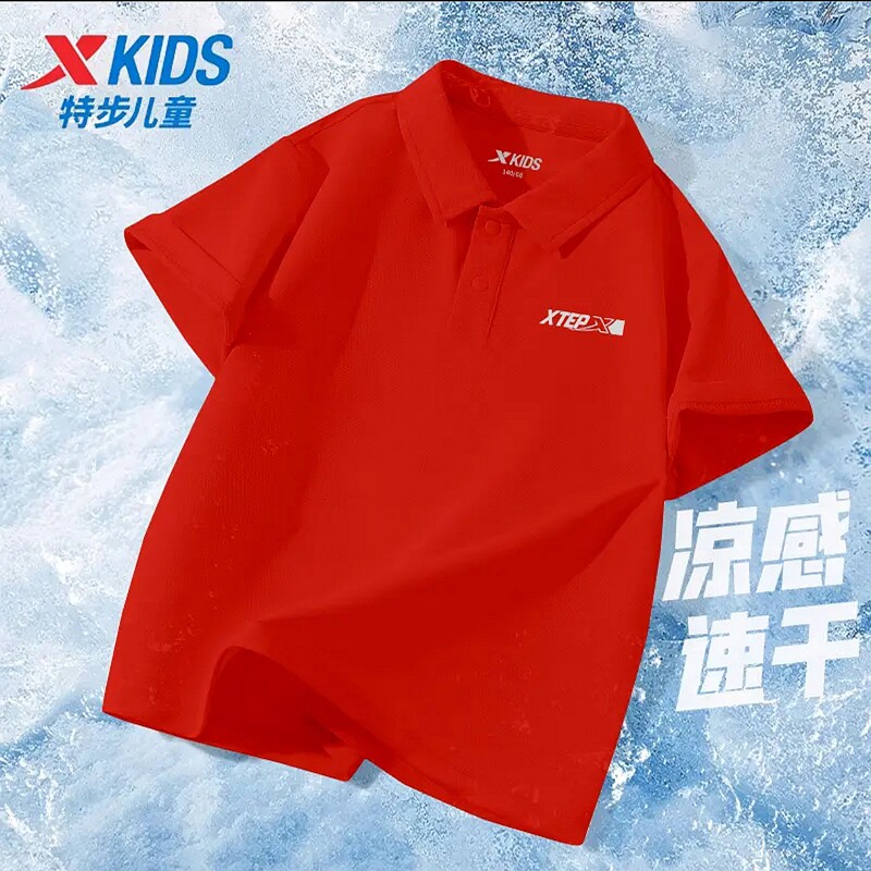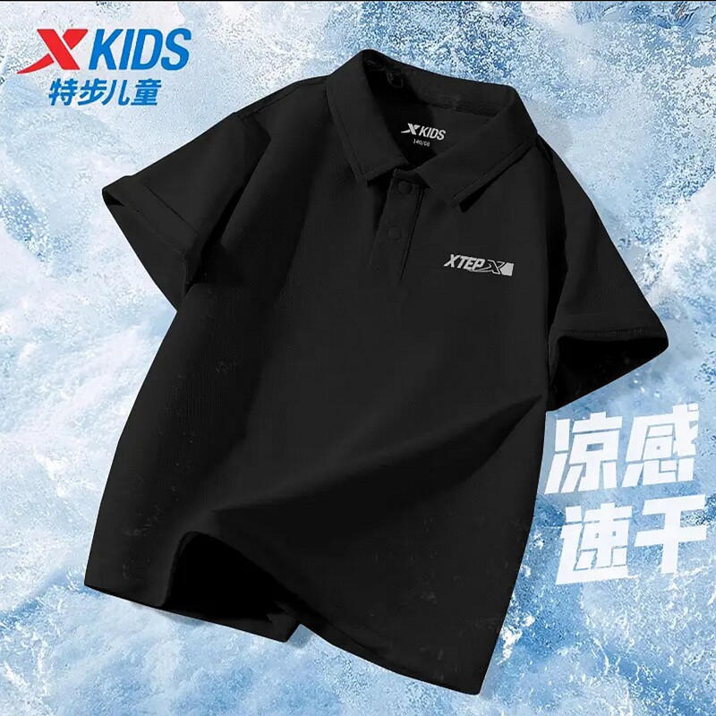特步儿童短袖青少年T恤吸汗速干运动衬衫新款时髦男童Polo衫正品