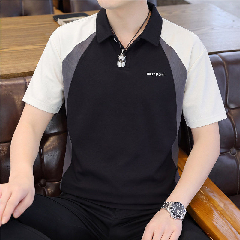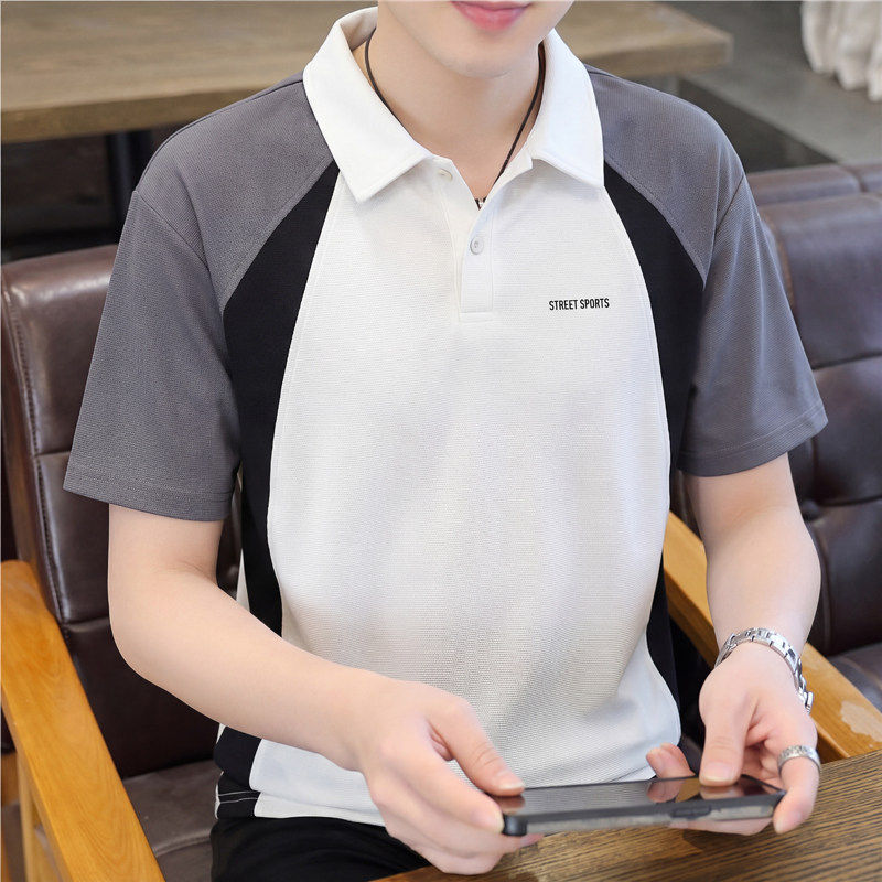 男士高档翻领短袖T恤夏季冰丝POLO韩版休闲半袖潮流衬衫青春流行
