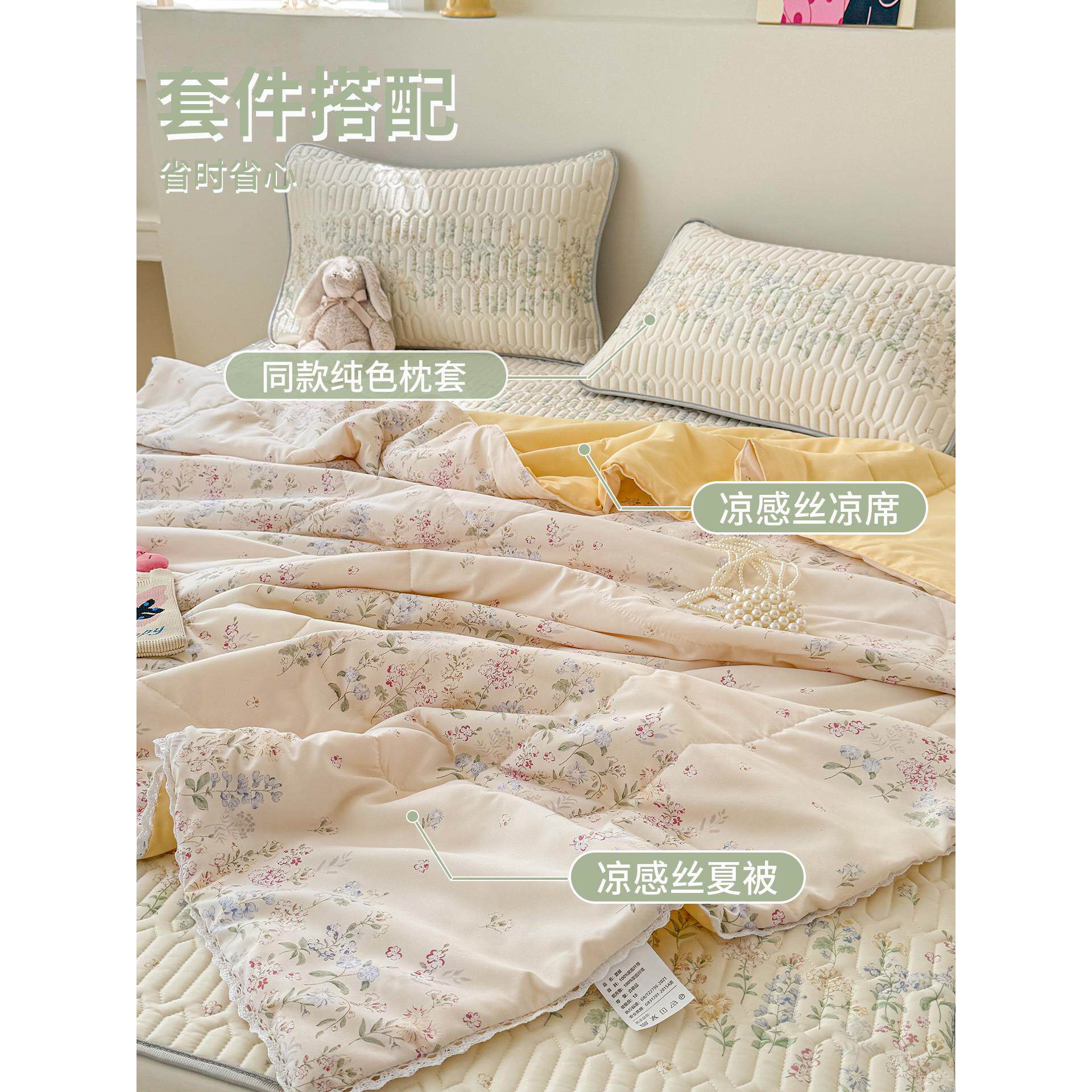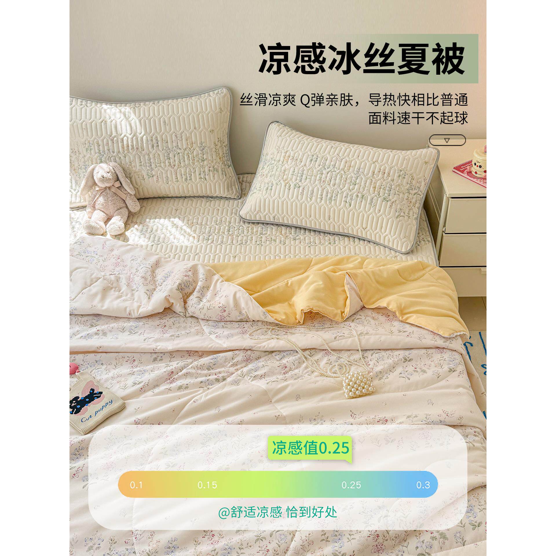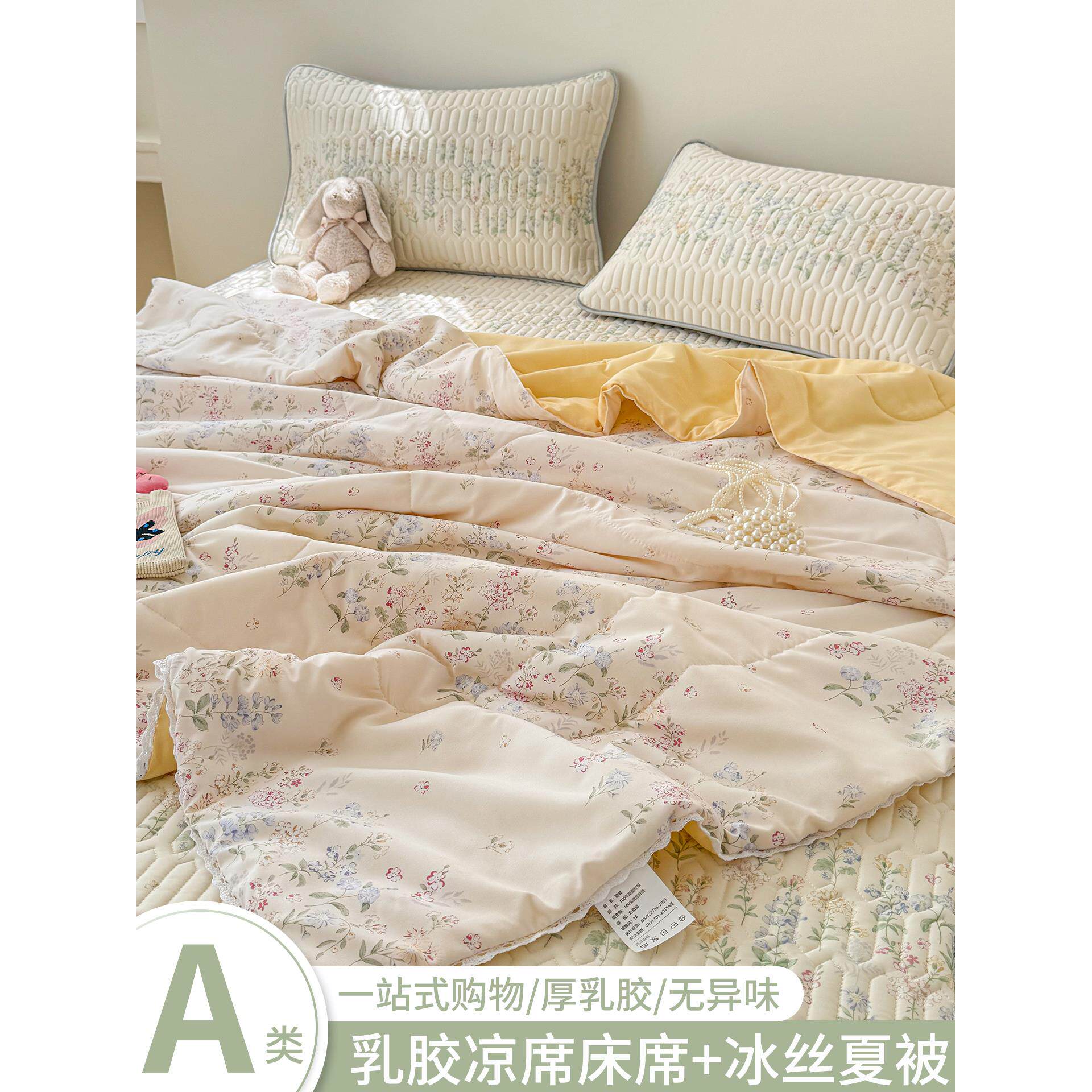 冰丝乳胶凉席夏被床上四件套空调被夏季儿童空调软席子床单三件套