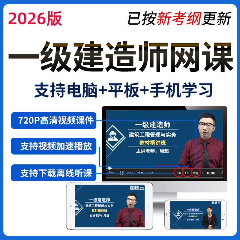 2026年一建建筑工程实务周超视频课程教材一级建造师题库案例网课