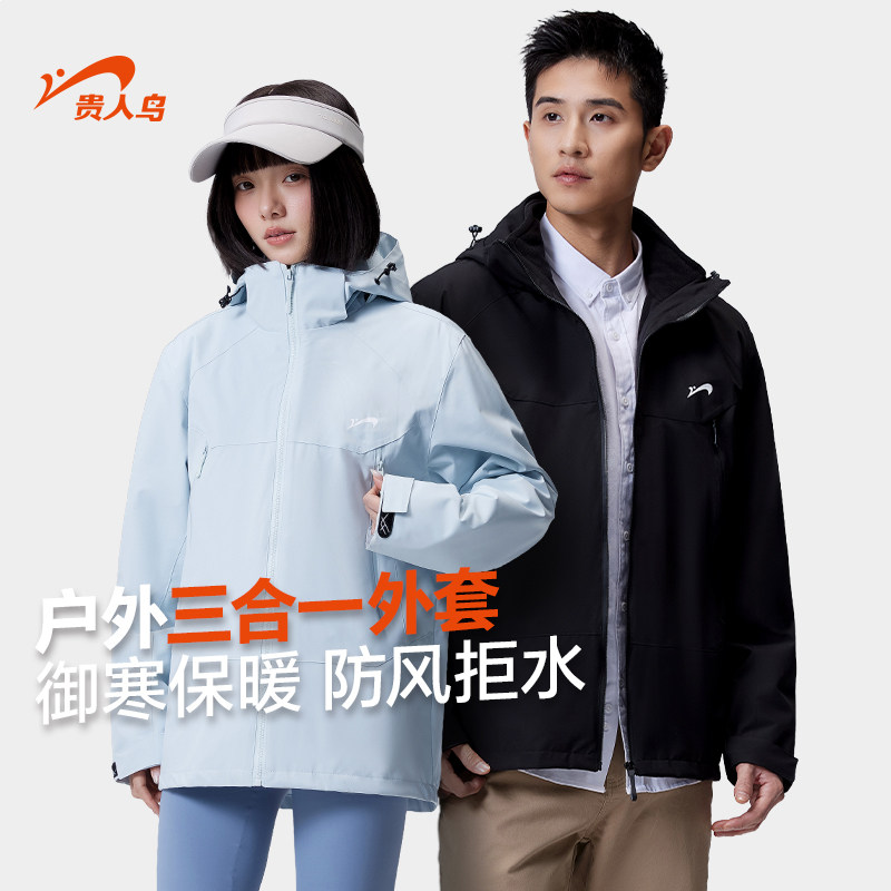 贵人鸟三合一冲锋上衣男款春秋季2026年新款外套男生春装风衣女款