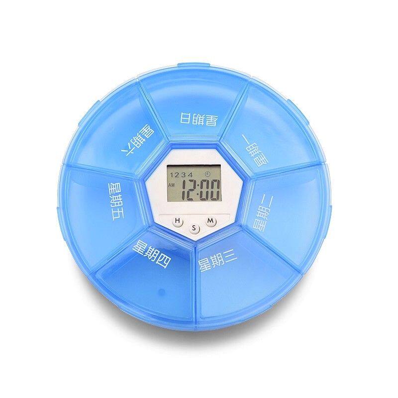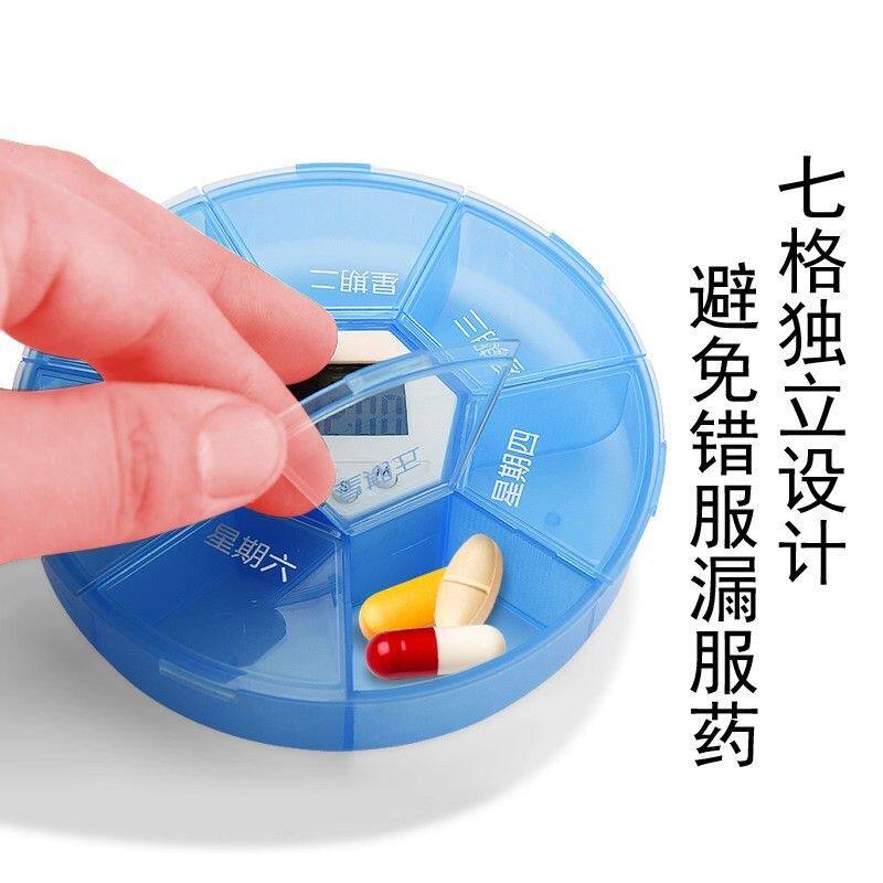 智能提醒电子药盒格便携式定时提醒药盒圆形七格药盒夜间照明药盒