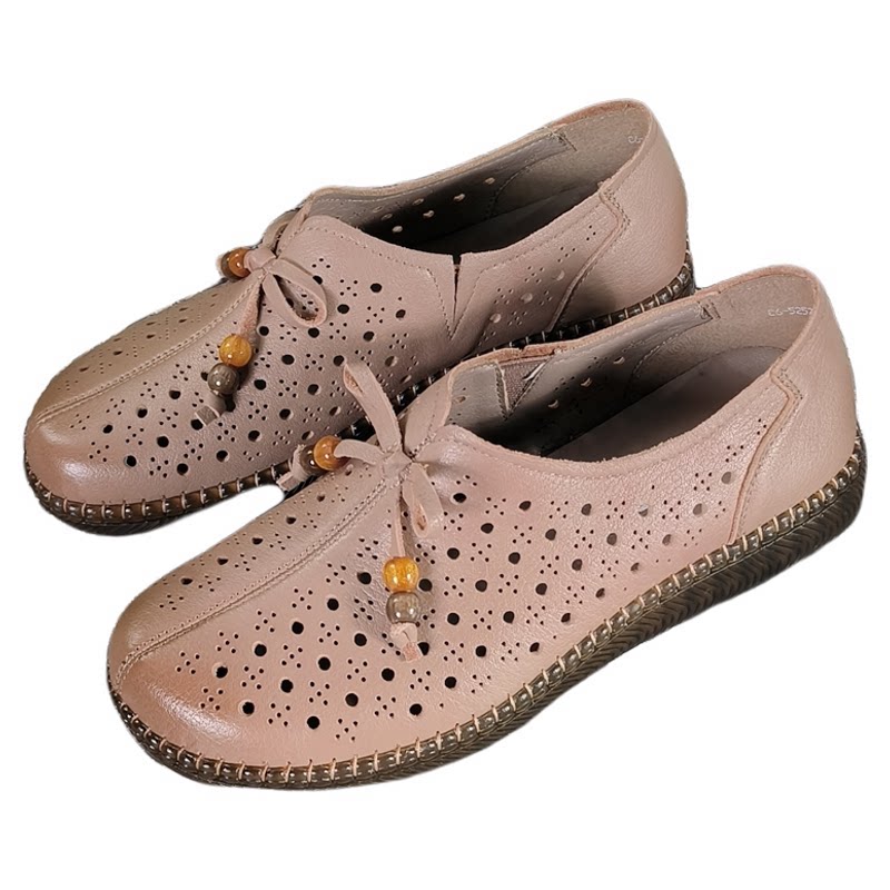 不累脚真皮软底妈妈鞋女2026春夏新款平底凉鞋女透气防滑轻便女鞋