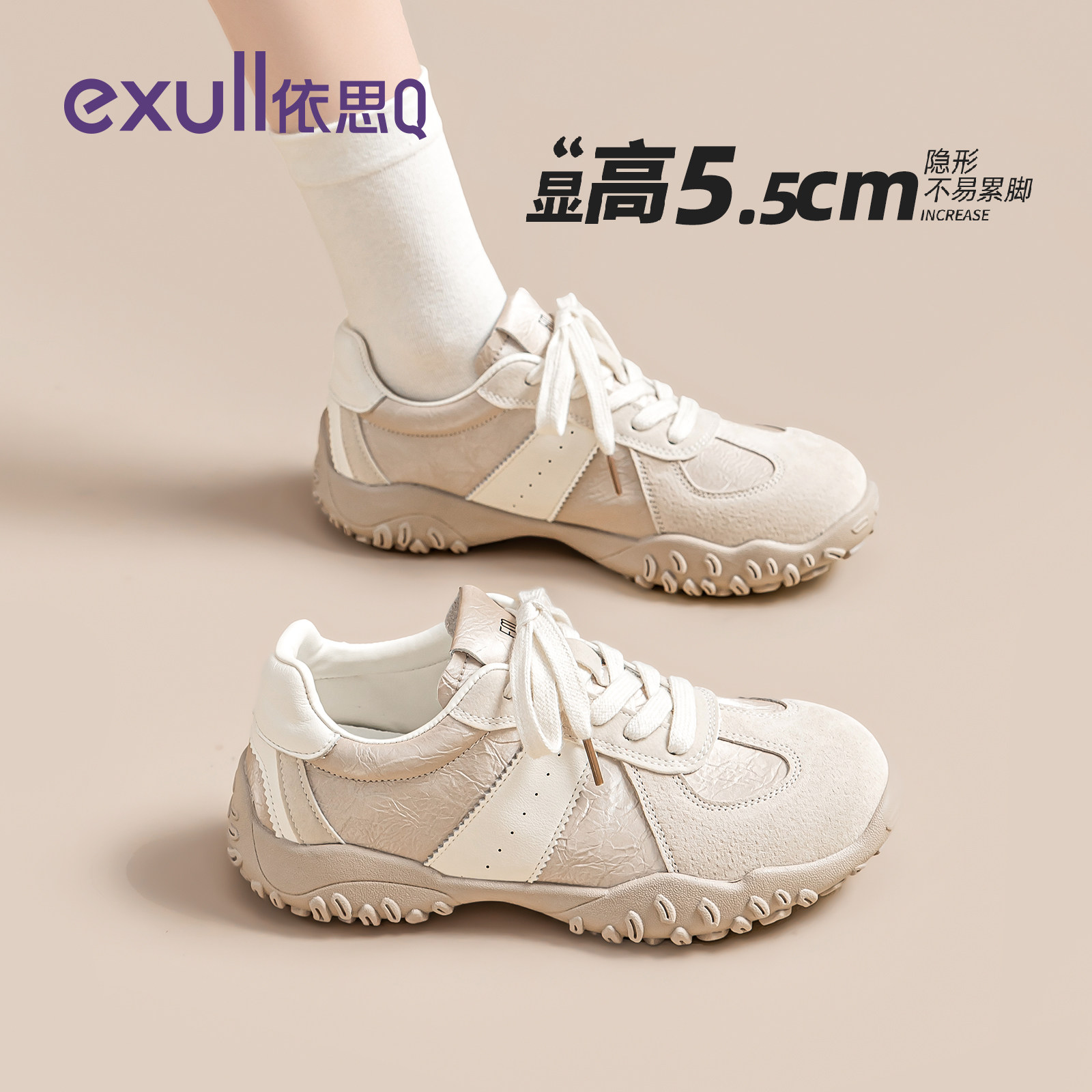 依思q真皮德训鞋女鞋2026春季新款爆款内增高经典厚底运动鞋