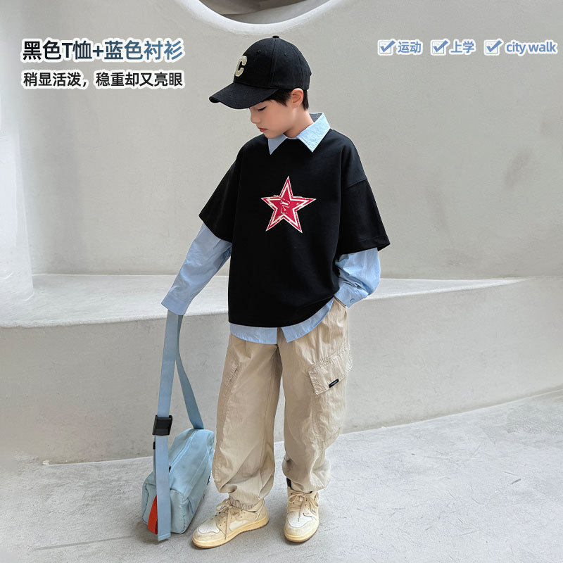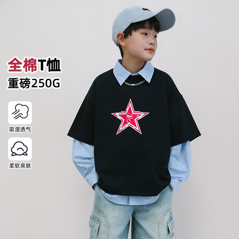 2025夏季新品重磅纯棉男童t恤 中大童春装外搭上衣儿童短袖批发