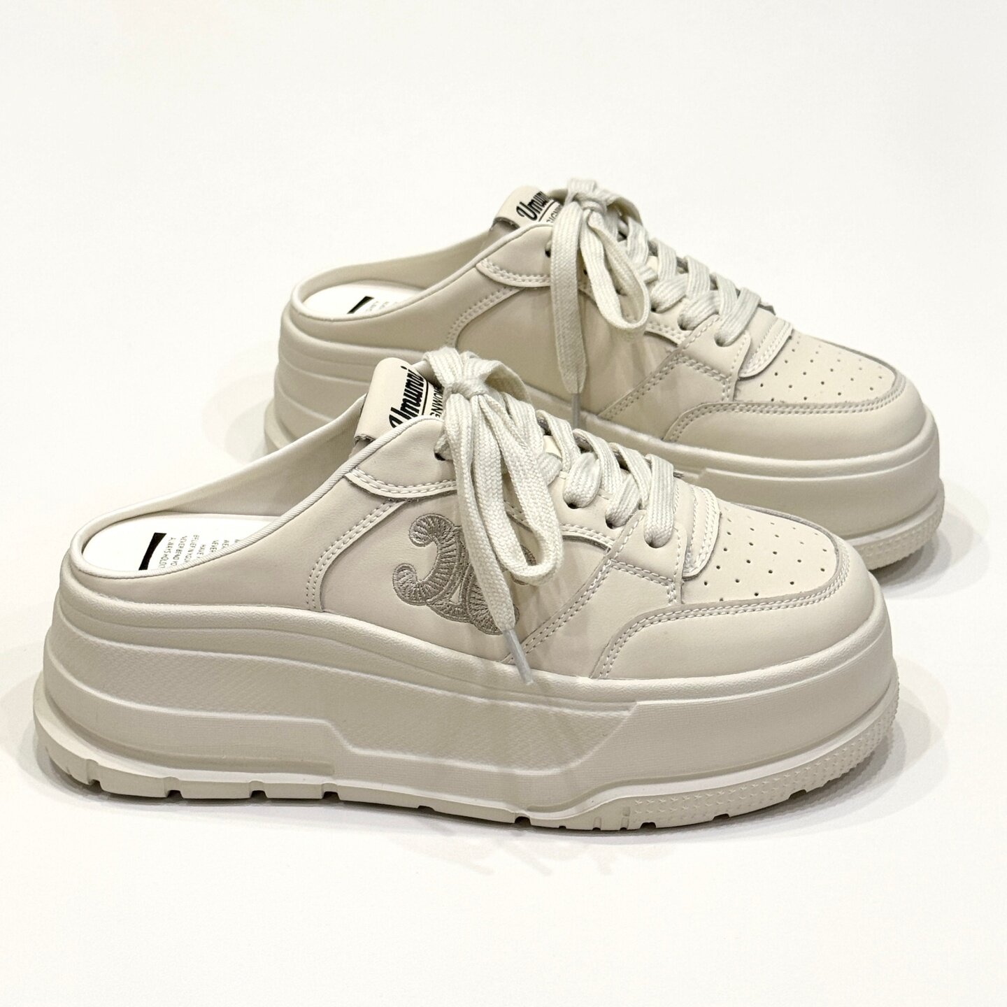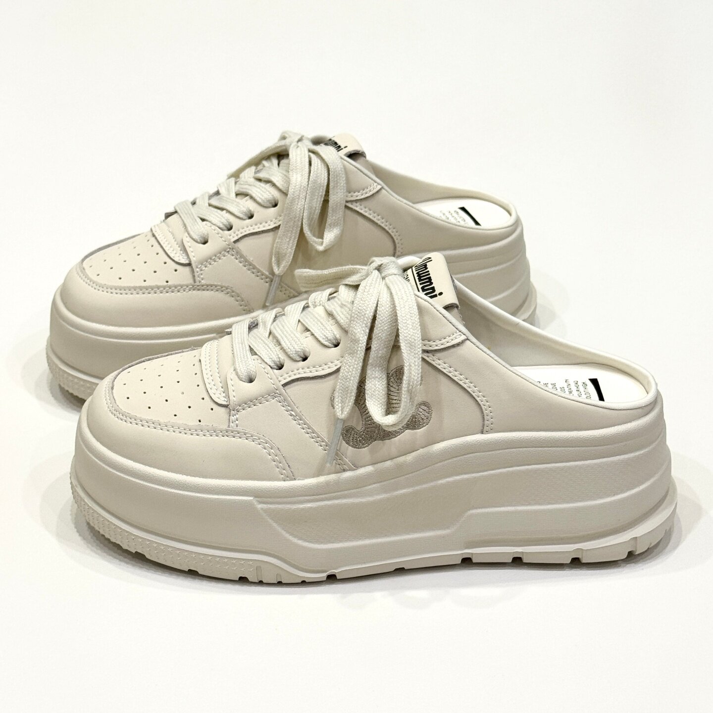 优慕妮配阔腿裤的增高半拖鞋女款外穿真皮厚底轻便松糕包头凉拖鞋