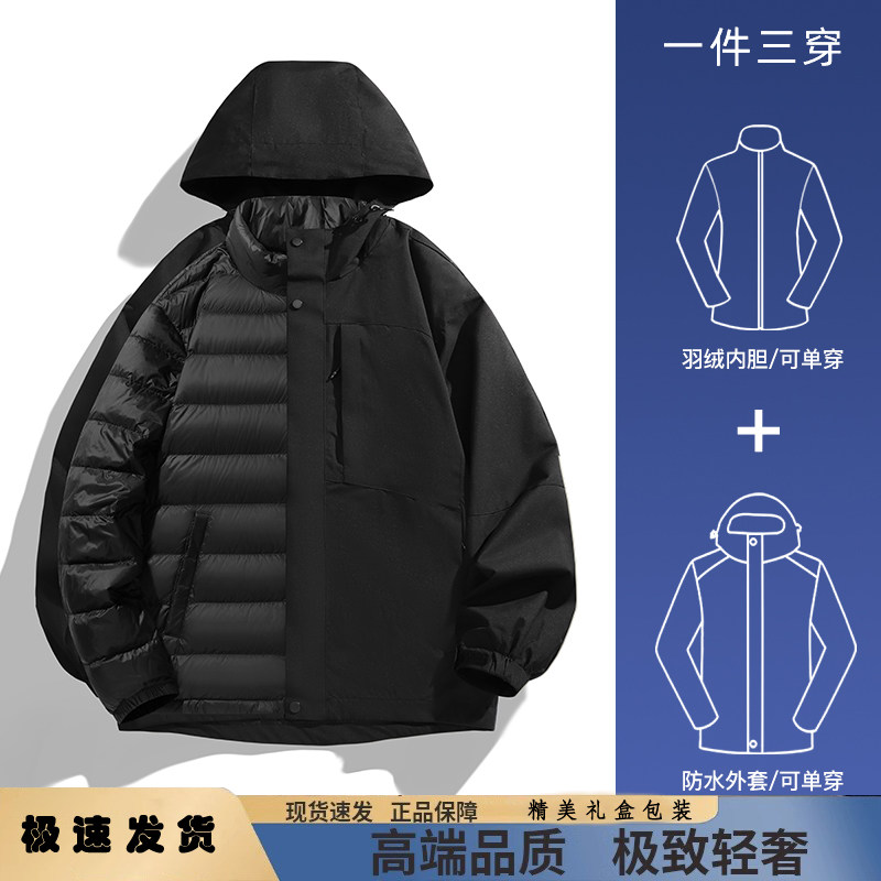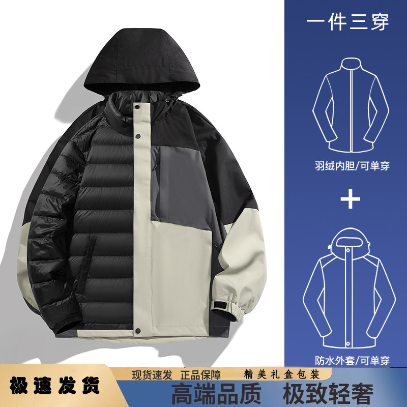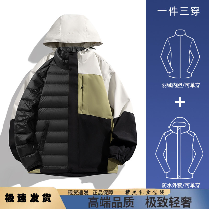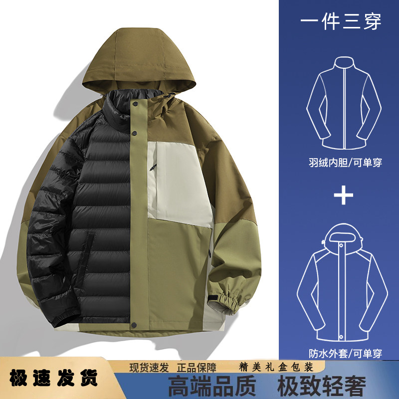 官方高端正品白鸭绒冲锋衣新款三合一羽绒内胆登山服男女同款