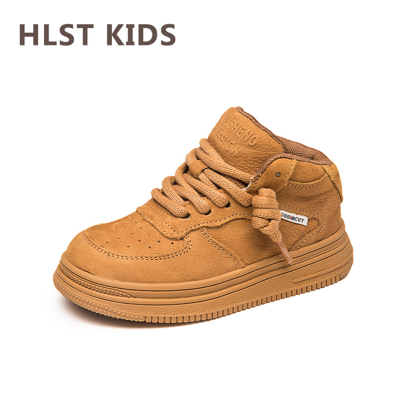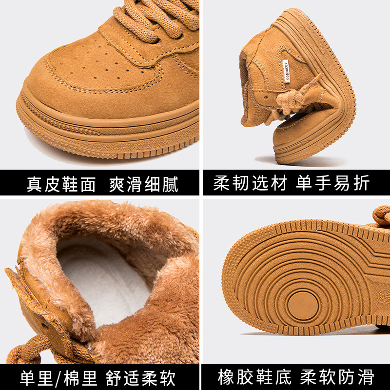儿童头层牛皮篮球鞋2026秋冬新款男童加绒加棉小白鞋女童透气板鞋