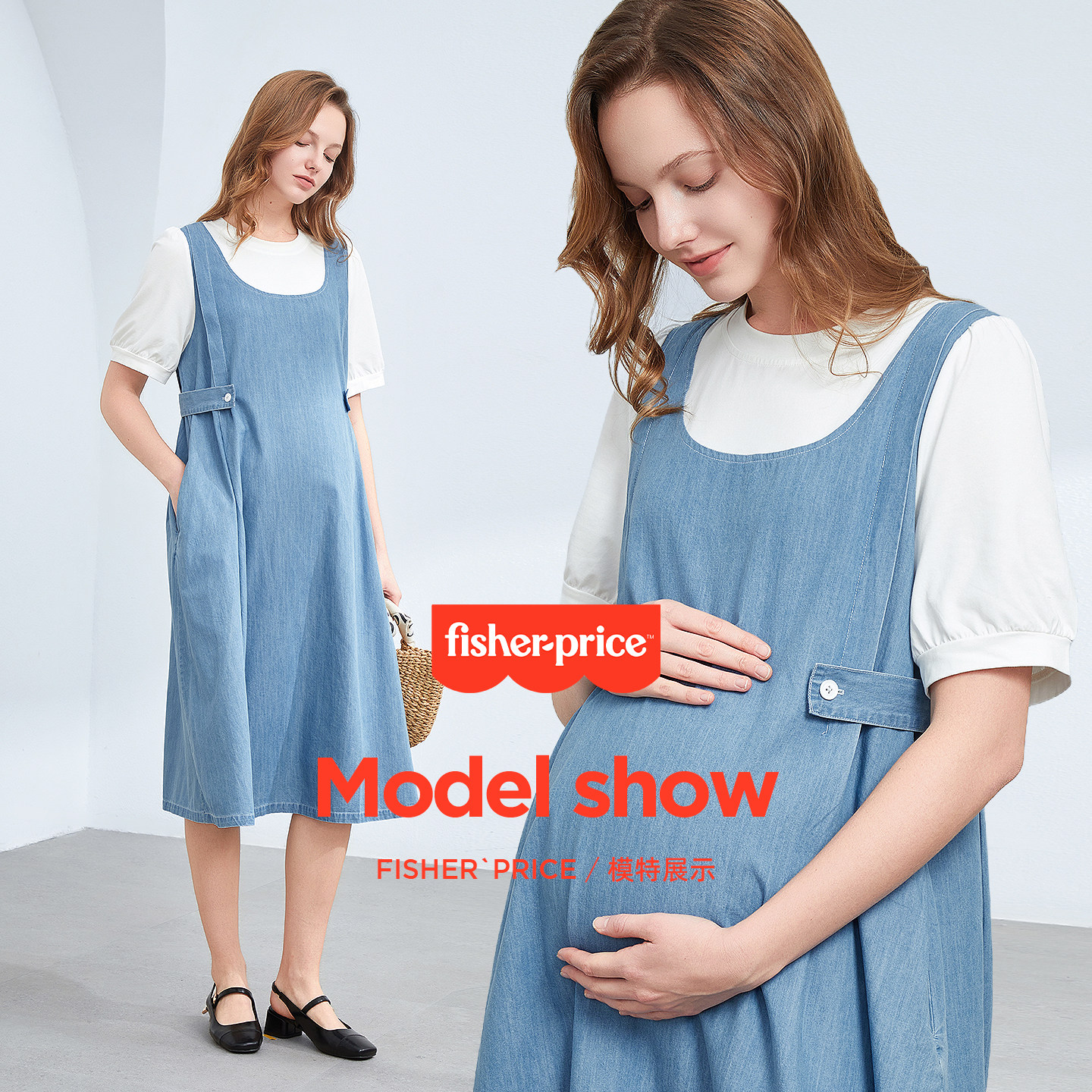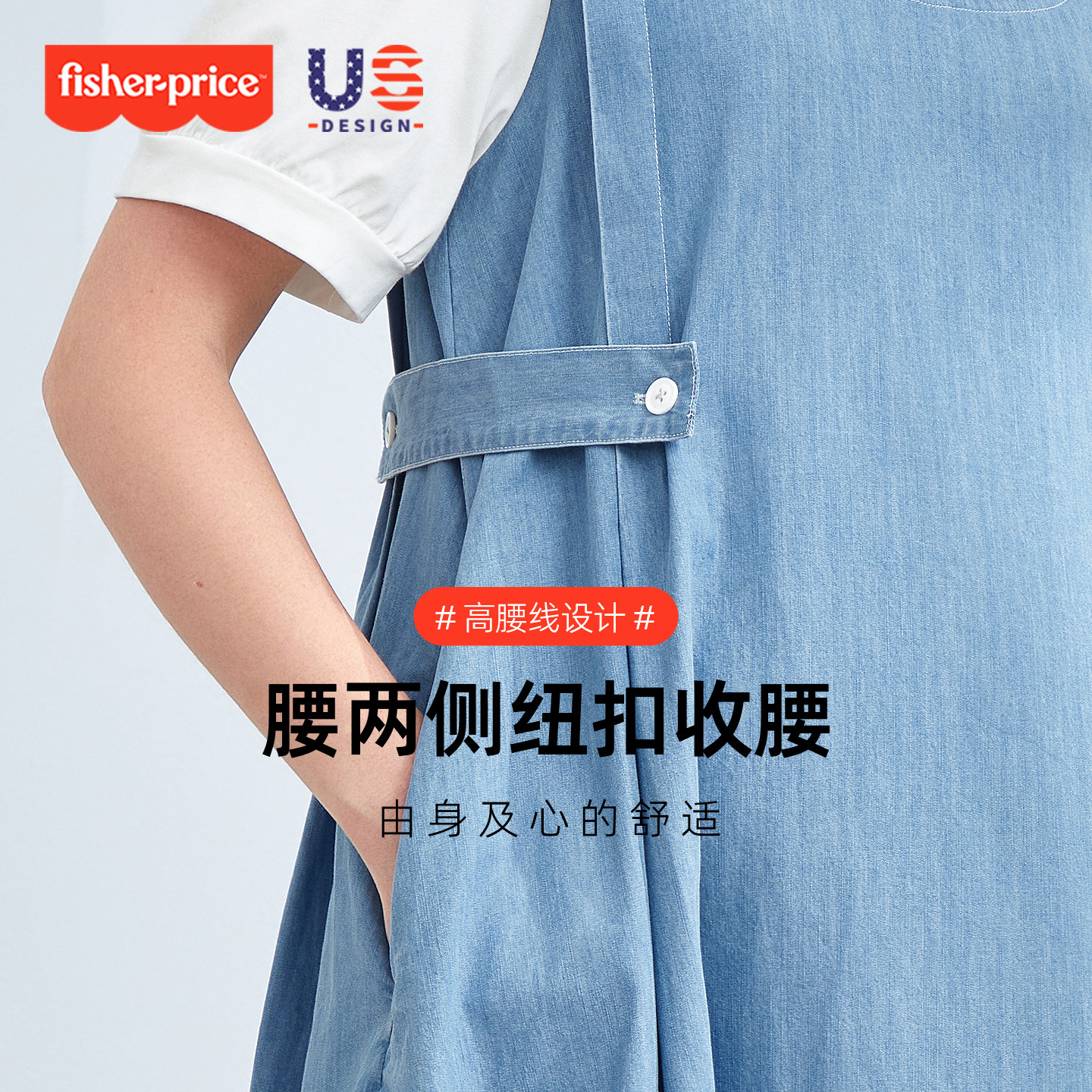 费雪孕妇连衣裙2026新款夏季孕期高级感穿搭纯棉假两件牛仔裙夏装